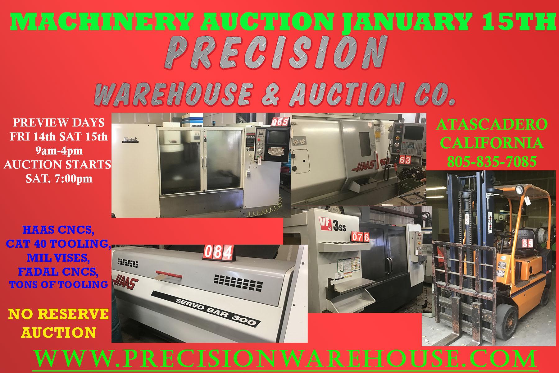 Hello There, We just wanted to let you know that we are conducting a Machinery Shop Auction January 15th in Atascadero, Ca. This Auction will have 2 live preview days to inspection equipment . All equipment being sold through retirement sale. Auction is a Online Auction with the first lot closing out to the highest bidder January 15th 7:00 Pm PST.