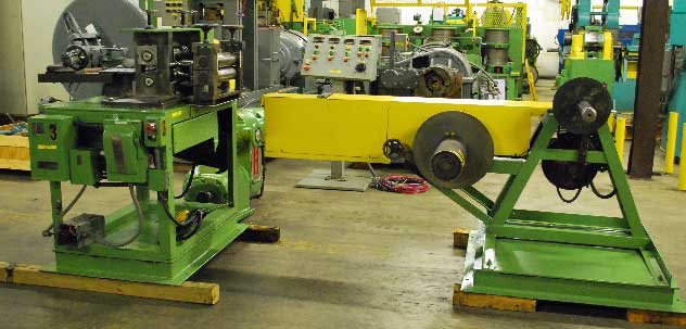 -Uncoiler: Type: Non-Driven Expanding Mandrel Mandrel Face Width: 12" (305mm) Expansion Range: 11.5" (292mm) - 12" (305mm) Dia. Type Expansion: Manual Passline Height: 31" (787.4mm) Brake for Back Tension: Manual Band Brake Maximum Coil O.D.: 36" (915mm) Overall Size: 41" L x 39" W x 54" High