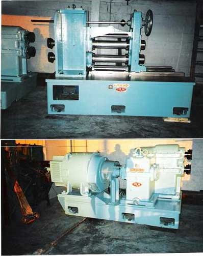 MACHINE # 10610 MANUFACTURER: RUESCH MACHINE COMPANY, NEW JERSEY MODEL: 177 ARBOR SIZE: 24" (609mm) WIDE X 6.5" (165mm) DIAMETER SLITTER HEAD DRIVE MOTOR: 125 HP RELAINCE DC, 480 VOLTS, 850/1800 RPM GEAR BOX: HORSBURGH AND SCOTT 157 HP, SERVICE FACTOR 1.O, RATIO 18:07 TO 1 850 RPM, INPUT, SIZE 12"-W-29", VERTICAL DISTANCE BETWEEN PINION SHAFTS 13", ELECTRIC CLUTCH LINE SPEED (APPROX): 0 - 258 FPM APPROXIMATE DIMENSIONS: HEAD: 8.5' L X 4' W X 6.5' H DRIVE: 10' L X 7' W X 5' H APPROXIMATE WEIGHT: HEAD: 15,000 POUNDS DRIVE: 8,000 POUNDS MACHINE IS EQUIPPED WITH TOOLING. **PRICE QUOTED AS IS WHERE IS SUBJECT TO PRIOR SALE** **ALL SPECIFICATIONS ARE SUBJECT TO VERIFICATION BY PURCHASER** |