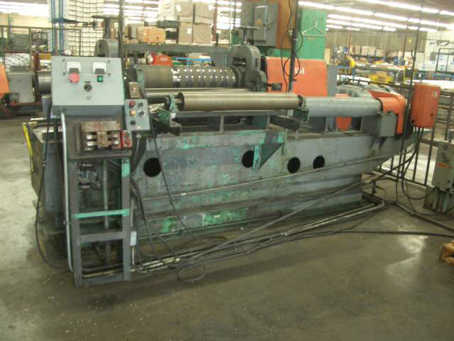 MACHINE# 11955 SPECIFICATIONS: DUAL PAYOFF: PAYOFF No. 1: MANUFACTURER: PAXSON MACHINE CO.-USA CAPACITY: 10,000 LB. (4536 KG) I.D. RANGE: 14"- 20" (356mm-508mm) WIDTH: 36" (915mm) TYPE: EXPANDING MANDREL TYPE EXPANSION: HYDRAULIC COIL I.D.: 36" (915mm) MAXIMUM SLIDING BASE: HYDRAULIC BRAKE FOR BACK TENSION: HYDRAULIC FEED UP DRIVE MOTOR: 3 PH, 208-230/460 VOLT, 1725 RPM, 8.5-8.2/4.1 AMP, 3 PH., 60 HZ HYDRAULICS: VICKERS MODEL TK10VP-V30F-M PAYOFF No. 2: MANUFACTURER: LITTELL MODEL: 18-22-18 COIL WEIGHT: 2500 LB. (1134 KG) MAXIMUM I.D. RANGE: 18"-22" (458mm-560mm) WIDTH: 15" (381mm) TYPE: NON-DRIVEN SLITTERHEAD: ARBOR DIAMETER: 4 1/4" (108mm) ARBOR WIDTH: 38" (965mm) ENTRY BILLY ROLL: 5" (127mm) DIA. x 36" (915mm) TYPE: NON-DRIVEN PINCH ROLLS: 4" (102mm) DIA. x 38" (965mm) DRIVEN OFF ARBOR DRIVE MOTOR ARBOR RETRACTION FOR TOOL CHANGE: MANUAL DUAL HAND WHEEL ADJUSTMENT DRIVE MOTOR: 20 HP, 220/440 VOLT, 1750 RPM, 3 PH., 60 HZ GEARBOX: 14 HP RATING, 1750 RPM, 3 PH., 60 HZ, RATIO 31/1 KNIFE SIZE: 4 1/4" (108mm) I.D. x 9 3/4" (248mm) O.D. RUBBER SPACERS RECOILER: TYPE: PULL-THROUGH EXPANDING MANDREL MANDREL I.D.: 15 1/2"- 16" (394mm_407mm) MANDREL WIDTH: 36" (915mm) EXPANSION: MANUAL COIL PUSH-OFF: HYDRAULIC DRIVE MOTOR: 50 HP, 1750-2100 RPM, 500 VOLT, 83.5 AMP, DC VARIABLE SPEED BY RELIANCE GEARBOX RATIO: 4 TO 1 ELECTRONICS ON RECOILER DRIVE MANUFACTURER: BARDAC ELECTRONICS-USA TYPE: SCR THYRISTOR DC CONTROL SCRAP WINDER: TYPE: DRIVEN FLOOR SPACE: 60 FT. (182m) x 15 1/2 FT. (4.725m) EQUIPPED WITH TWO SETS OF KNIVES AND SPACERS. **PRICE QUOTED AS IS WHERE IS SUBJECT TO PRIOR SALE** **ALL SPECIFICATIONS ARE SUBJECT TO VERIFICATION BY PURCHASER** |
