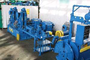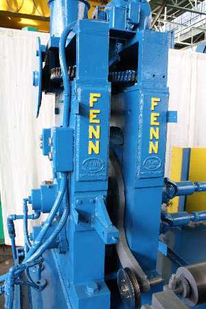 Machine # 12515 MANUFACTURER:..................FENN MANUFACTRUING CO. USA TYPE MILL:.....................2 STAND TANDEM WIRE FLATTENING LINE 1ST STAND SERIAL NUMBER:.................269 ROLL SIZE:.....................8" (203.2mm) DIAMETER X 2-1/2" (63.5mm) SHELL MILL STAND CROSS SECTION:......5-13/16" (147.6mm) X 5-13/16" (147.6mm) MILL STAND WINDOW:.............8-3/4" (222.25mm) WIDE X 20" (508mm) HIGH SCREWDOWN:.....................ELECTRO MECHANICAL DRIVE MOTOR:.....................75/100 HP DC, 500/1500 RPM, 230 V, 275/365 AMPS EDGER:.........................FRICTION DRIVEN 2ND STAND SERIAL NUMBER:.................270 ROLL SIZE:.....................8" (203.2mm) DIAMETER X 2-1/2" (63.5mm) SHELL MILL STAND CROSS SECTION:......5-13/16" (147.6mm) X 5-13/16" (147.6mm) MILL STAND WINDOW:.............8-3/4" (222.25mm) WIDE X 20" (508mm) HIGH SCREWDOWN:.....................ELECTRO MECHANICAL DRIVE MOTOR:.....................75/100 HP DC, 500/1500 RPM, 230 V, 275/365 AMPS WIDTH & THICKNESS GAUGES:......PRATT & WHITNEY RECOILER:......................FENN TRAVERSE TAKE-UP **Preliminary Specifications Subject to Verification** **PRICE QUOTES AS IS WHERE IS SUBJECT TO PRIOR SALE** **ALL SPECIFICATIONS ARE SUBJECT TO VERIFICATION BY PURCHASER** |