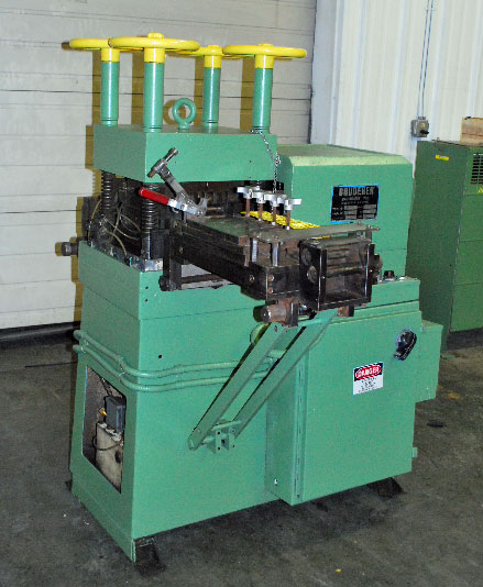 MACHINE# 12018 SPECIFICATIONS: MANUFACTURER: BRUDERER A.S. (SWITZERLAND) TYPE: 19 ROLL BACKED UP LEVELER MODEL No.: 24180B SERIAL No.: 55033 YEAR OF MANUFACTURE: 1982 TYPICAL THICKNESS RANGE: 0.4mm - 2.5mm (0.0157" - 0.098") MAX STRIP WIDTH: 180mm (7") No. OF ROLLS: 19 No. OF DRIVEN ROLLS: 19 ROLL CONFIGURATION: 8 OVER 9 ROLL DIAMETER: 0.94" (24 mm) ROLL FACE: 7" (178 mm) ROLL BEARING LUBRICATION: FORCED HYDRAULIC SYSTEM W/INTERNAL TANK AND PUMP ENTRY GUIDES: COMBINATION VERTICAL SIDE GUIDE ROLLS OR HORIZONTAL PRE-FLATTENING ROLLS VERTICAL ROLLS: NON-DRIVEN DIAMETER: 2 1/4" (57 mm) ROLL FACE: 1 1/4" (32 mm) PRE-FLATTENING ROLLS: NON-DRIVEN QUANTITY: 4 SETS OF 2 ROLL DIAMETER: 1" (25 mm) FELT PRESSURE BOARD: MANUALLY ADJUSTABLE EXIT GUIDES: SAME AS ON ENTRY SIDE EXCEPT THERE ARE TWO SETS OF 2 1/4" (57 mm) VERTICAL ROLLS INSTEAD OF FOUR. ELECTRICS: TYPE: A.C. INVERTER VARIABLE SPEED MANUFACTURER: BALDOR ELECTRIC CATALOG No.: ID15H405-E SERIAL No.: 3494PX363 INPUT: 460 VOLTS, A.C., 3 PH., 50/60 HZ OUTPUT: 460 VOLTS, A.C., 3 PH., 0-400 HZ STANDARD QUIET ZONE 2.5 KHZ PWM 8.0 KHZ PWM CONSTANT VARIABLE CONSTANT VARIABLE TORQUE TORQUE TORQUE TORQUE FLA INPUT 7.8 -- 4.9 7.8 HP OUT 5 -- 3 5 KW OUT 3.7 -- 2.2 3.7 FLA OUT 7.6 -- 4.8 7.6 PKA OUT 15.2 -- 9.6 15.7 ACME GENERAL PURPOSE TRANSFORMER PASS-LINE HEIGHT: 41 1/2" (1054 mm) DIMENSIONS: 68" L x 48" W x 62" H (1727 mm L x 1220 mm W x 1574 mm H) **PRICE QUOTED AS IS WHERE IS SUBJECT TO PRIOR SALE** **ALL SPECIFICATIONS ARE SUBJECT TO VERIFICATION BY PURCHASER** |