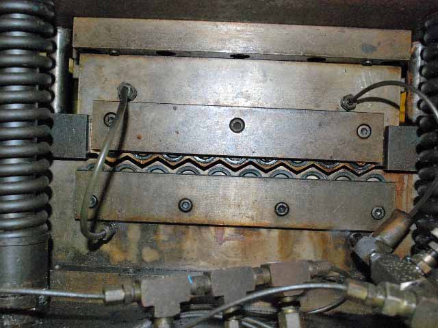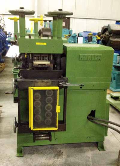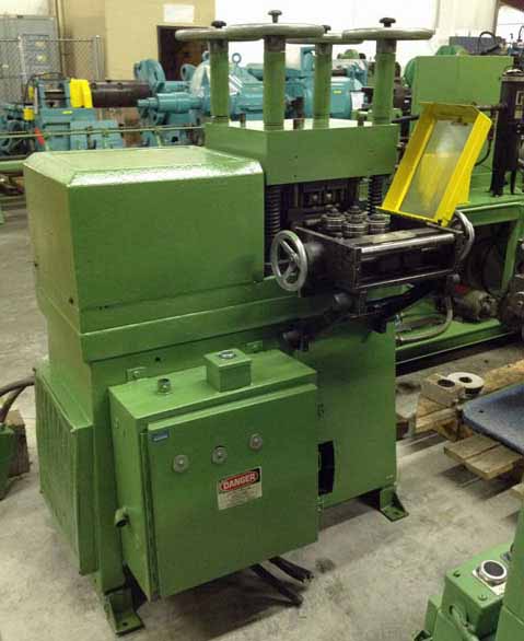 MACHINE# 12173 SPECIFICATIONS: MANUFACTURER: KOHLER A.S. TYPE: 19 ROLL BACKED UP LEVELER No. OF ROLLS: 19 No. OF DRIVEN ROLLS: 19 ROLL CONFIGURATION: 8 OVER 9 ROLL DIAMETER: 0.94" (24mm) ROLL FACE: 7" (178mm) TYPICAL THICKNESS RANGE: 0.0157" - 0.098" (0.4mm - 2.5mm) ROLL BEARING LUBRICATION: FORCED HYDRAULIC SYSTEM W/INTERNAL TANK AND PUMP ENTRY GUIDES: COMBINATION VERTICAL SIDE GUIDE ROLLS AND HORIZONTAL PRE-FLATTENING ROLLS VERTICAL ROLLS: NON-DRIVEN DIAMETER: 1 3/4" (44mm) ROLL FACE: 5" (127mm) EDGING ROLLS: QUANTITY: 9 ROLL DIAMETER: 2 3/4" (70mm) ROLL FACE: 1 1/4" (32mm) TYPE: NON-DRIVEN EXIT GUIDES: 4 VERTICAL ROLLS HANDWHEEL SCREWDOWNS: 4 DRIVE MOTOR: TYPE: DIRECT CURRENT MANUFACTURER: BALDOR ELECTRIC 5 HP, 1750 RPM 180 ARM VOLTS, 200/100 FIELD VOLTS **Please note DC power supply is not provided, Buyer must supply** EQUIPPED WITH SPARE ROLLS **Preliminary Catalogue Specifications Subject to Verification** **PRICE QUOTED AS IS WHERE IS SUBJECT TO PRIOR SALE** **ALL SPECIFICATIONS ARE SUBJECT TO VERIFICATION BY PURCHASER** |