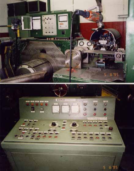 MACHINE #4228 MANUFACTURER: CARL WEZEL K.G. (KRUPP) MODEL: BW 300/350 ROLL SIZE: 12" DIA. x 14" FACE (300mm Dia. x 350mm Face) SERIAL NUMBER: 740523 YEAR OF MANUFACTURE: 1975 PURPOSE: PRECISION FINISH ROLLING OF NARROW WIDTH THIN GAUGE METAL USING AUTOMATIC GAUGE CONTROL WITH VOLLMER THICKNESS GAUGES CAPACITY: MAX. WIDTH OF STRIP: 10" (254mm) WIDTH PREVIOUSLY ROLLED: 4" (100mm) NORMAL MIN. WIDTH OF STRIP: .787" (20mm) WIDTH TOLERANCE: +/- 0.020" (+/- 0.5mm) MAX. THICKNESS OF STRIP: 0.157" (4mm) MIN. THICKNESS OF STRIP: 0.01" (0.25mm) THICKNESS TOLERANCE: +/- 0.0006" (+/- 0.015mm) *NOTE: THESE ARE MANUFACTURER'S NEW SPECIFICATIONS AND ARE NOT GUARANTEED BY SELLER. MAX. COIL WEIGHT: 4400 LBS. (2000 KG) MILL DRIVE: 58 KW, 260/2600 RPM, 58/420 VOLTS, 58 KVA SCREWDOWNS: ELECTROMECHANICAL SCREWDOWN SPEED: 0.078-1.0 IPM (2-25mm/Min.) PRE-STRESSED HOUSINGS MILL EQUIPPED WITH LOAD CELLS ROLLER BEARING ON CHOCKS WATER-COOLED ROLLS THICKNESS GAUGE: MANUFACTURER: VOLLMER MODEL: TYPE VBM 1063 E TYPE GAUGE READOUT: VOLLMER VMF 3 STRIP CHART RECORDER MILL SPEED (INFINITELY VARIABLE): 0-200 FPM (0-60m/Min.) PAYOFF: TYPE: EXPANDING MANDREL MANDREL SIZE: 12"/14" I.D. x 10" FACE (300/350mm x 250mm) DRIVE: 9 / 1 KW HYDRAULIC COIL HOLDOWN HYDRAULIC ENTRY LEVELLER EDGE GUIDES RECOILER: TYPE: EXPANDING MANDREL DRIVE: 1.2/12 KW, 100/1060 RPM, 40/200 V, 7.6 AMPS HYDRAULIC COIL HOLDDOWN -MILL HAS SCR THYRISTOR DRIVE SYSTEM (Older System, Should be upgraded) -MILL EQUIPPED W/SELF-CONTAINED HYDRAULIC PACKAGE, CONTROLS AND STORAGE TANK -MILL EQUIPPED W/AUTOMATIC GAUGE CONTROL SYSTEM USING VOLLMER THICKNESS GAUGES **PRICE QUOTED AS IS WHERE IS SUBJECT TO PRIOR SALE** **ALL SPECIFICATIONS ARE SUBJECT TO VERIFICATION BY PURCHASER** |