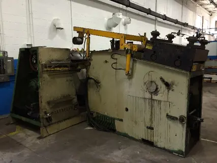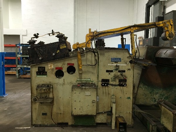 Coil weight capacity: 20,000 Lbs. Coil width capacity: 24" Regal Coil Reel Uncoiler Model No.: 24SRNP, Serial No.: 4731175 Three Leaf Mandrel coil reel Hydraulic coil reel mandrel expansion Coil reel keeper arms Air drag brake mounted on main coil reel spindle Adjustable tensioning Air clutch thread drive for jog forward and reverse "As-Is" Warranty: Inspection Terms: Net prepaid prior to shipping |