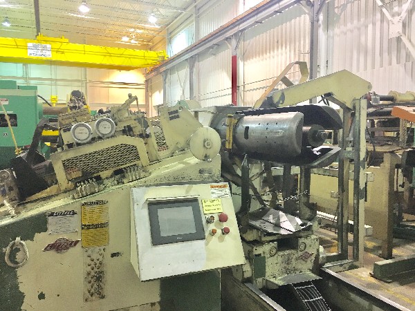 Coil weight capacity: 30,000 Lbs. Coil width capacity: 48" Stock thickness capacity: .060" @ 48" Stock thickness capacity: .187" @ 15" Expansion range: 20"- 24" Coil OD capacity: 72" Serial no.: 89767-89 Equipped With: LITTELL Coil Reel - Model S300-48 Three leaf mandrel Hydraulic mandrel expansion Heavy duty wedge type expansion Coil keeper arms Self contained hydraulic unit Threading drive Air brake mounted on main spindle Adjustable tensioning Coil hold down arm with motorized end wheel for stock threading Traveling coil load car Powered lift and travel Adjustable narrow coil supports LITTELL Powered Straightener - Model 450-5PD Entry pinch rolls with air operated adjustments Five straightening rolls x 3.5 inch diameter Back-ups of upper and lower straightening rolls Stock peeler table with extension Hand crank entrance edge guides Air operated entrance side pinch rolls Exit side cascade loop support rolls Operator's controls Loop control LITTELL Exit Thread Tables Dual sided Bomb Bay Door style LITTELL Roll Feed Model 5-50 DLC Five inch diameter rolls Air operated upper roll lift Cabinet base mounted Servo drive and control system "As taken from service" Warranty: Standard MDNA thirty day return privilege Terms: 40% Deposit, net prepaid |