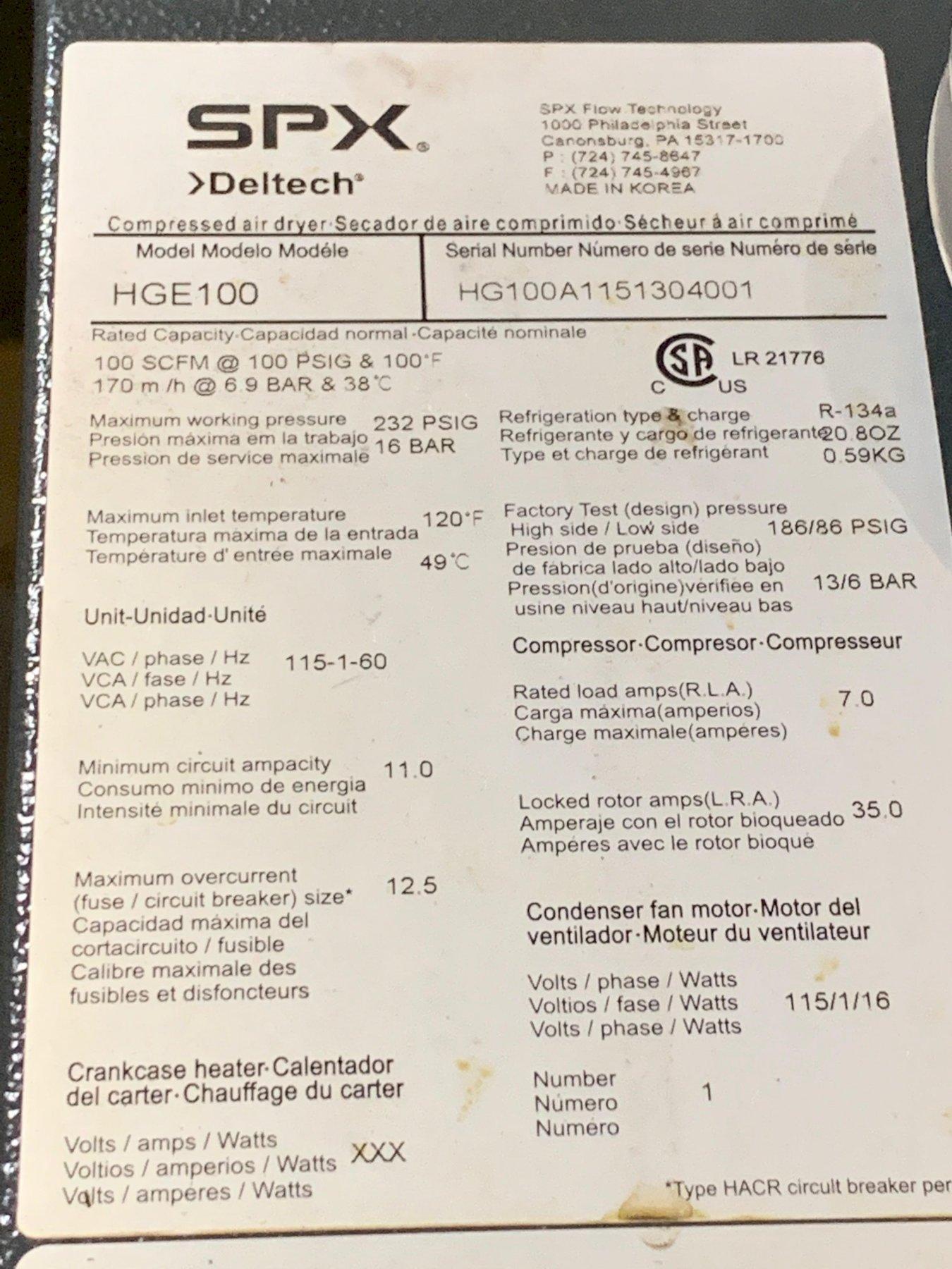 Maximum Working Pressure: 232 PSIG Maximum Inlet Temperature: 120 Deg. F Electrics: 115V |