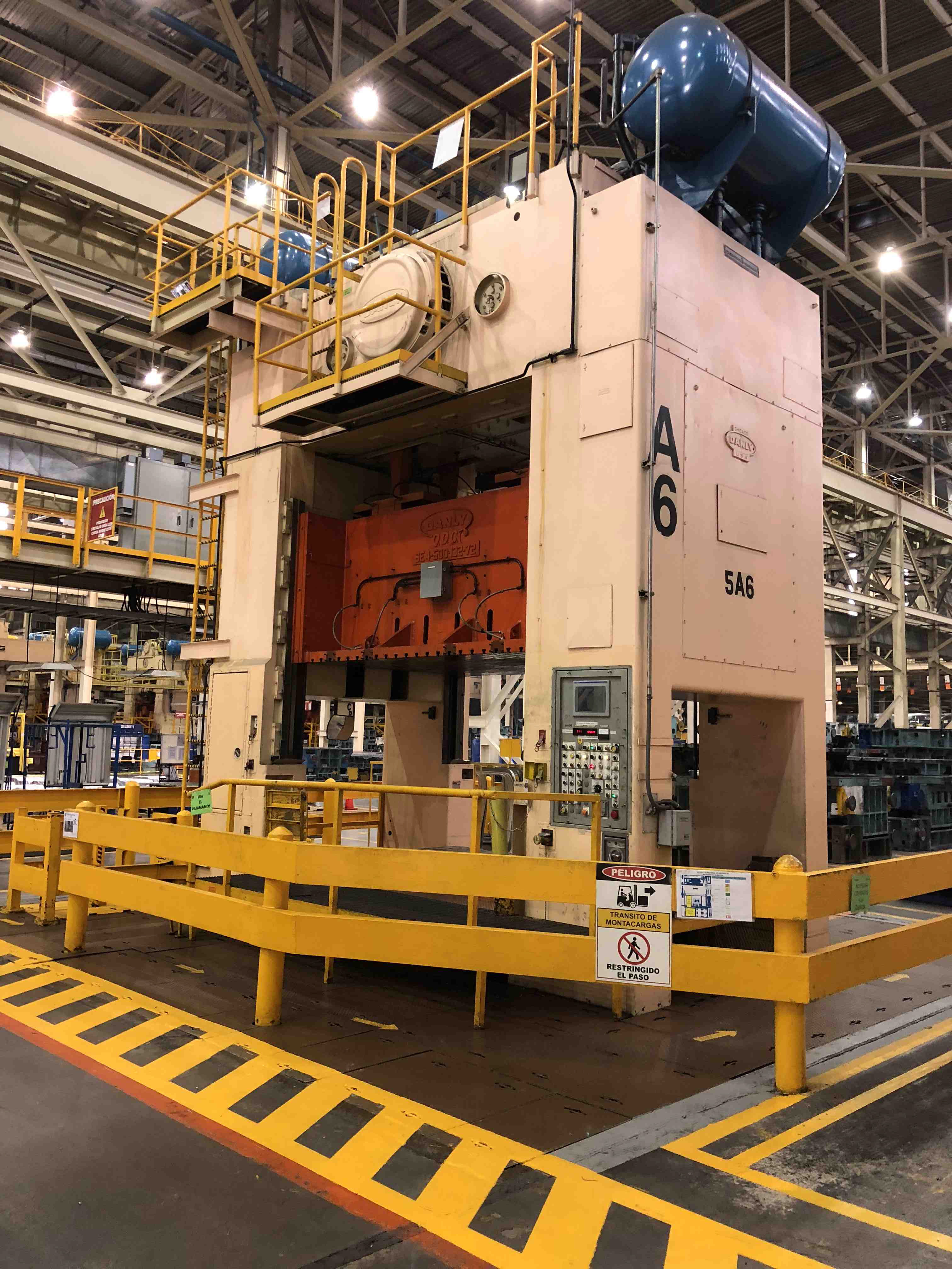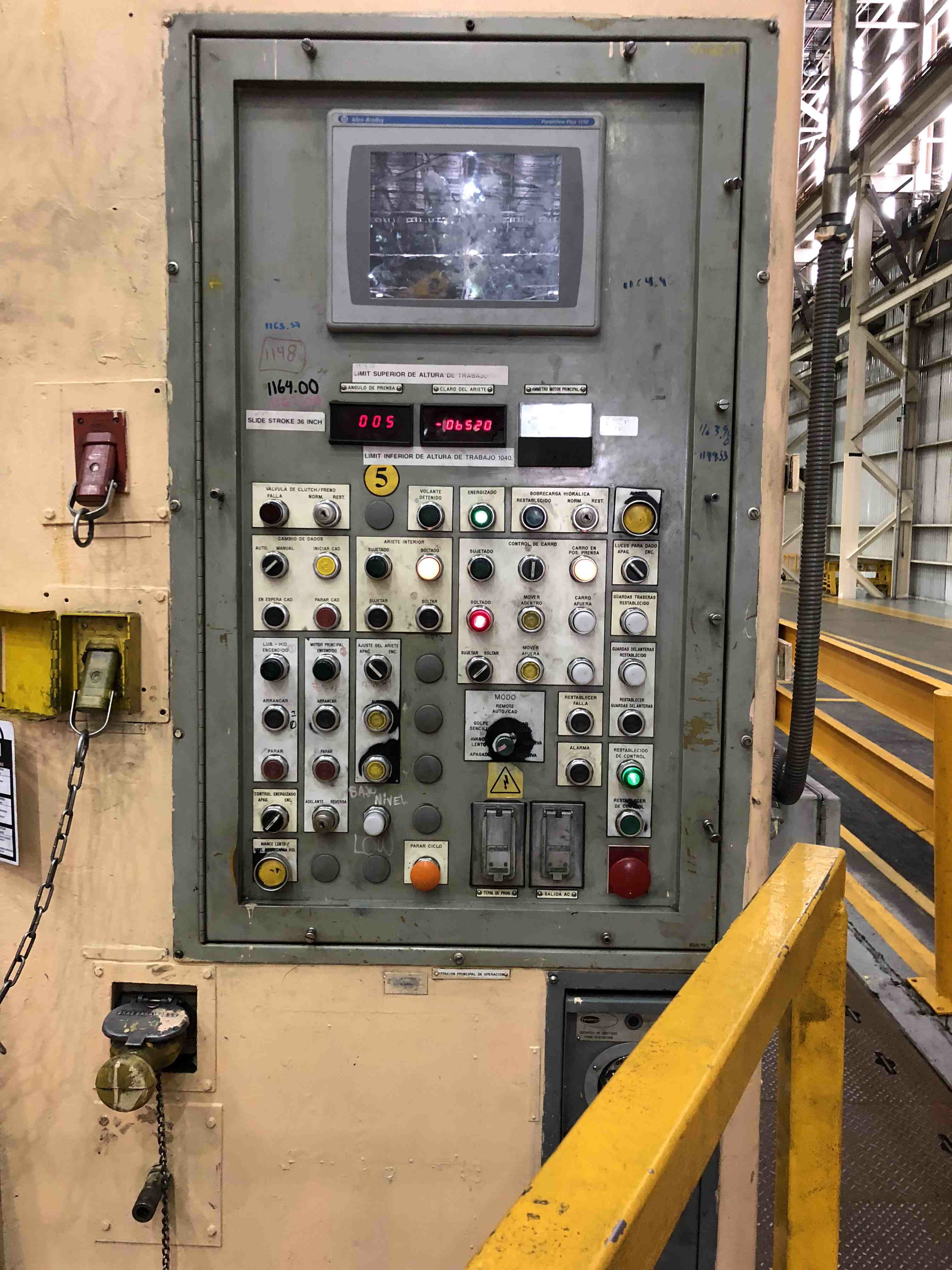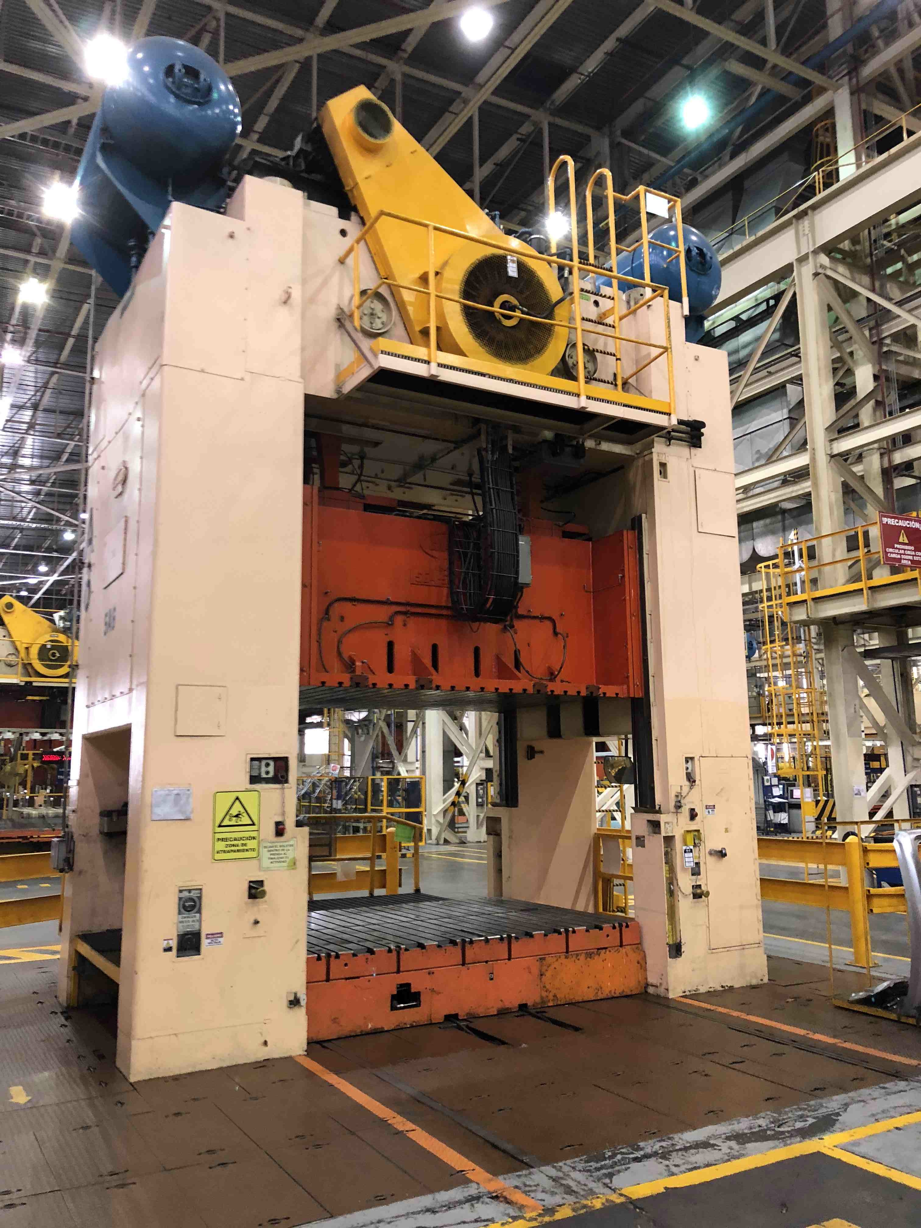 DANLY STRAIGHT SIDE DOUBLE CRANK MECHANICAL PRESS MODEL SE4-500-132 X 72 QDC 500 TON CAPACITY 36" STROKE 24" SLIDE ADJUSTMENT 64" SHUT HEIGHT 132" LR X 72" FB BED AREA (ROLLING BOLSTER F-B) 132" LR X 72" FB SLIDE AREA 117" LR X 51" FB BED OPENING 84" LR X 83" FB UPRIGHT OPENING 20 STROKES PER MINUTE EQUIPPED WITH CONTROL PANEL ON PRESS COLUMN ALLEN-BRADLEY PANELVIEW T-SLOTTED ROLLING BOLSTER F-B T-SLOTTED SLIDE MOTOR & ELECTRICAL AVAILABLE FOR INSPECTION UNDER POWER BY APPOINTMENT!! THIS PRESS WAS USED FOR TRYOUT, CALL FOR EARLY INSPECTION!! Specifications Subject To Verification; Subject To Prior Sale and Price Change We encourage your personal inspection of this press line! |