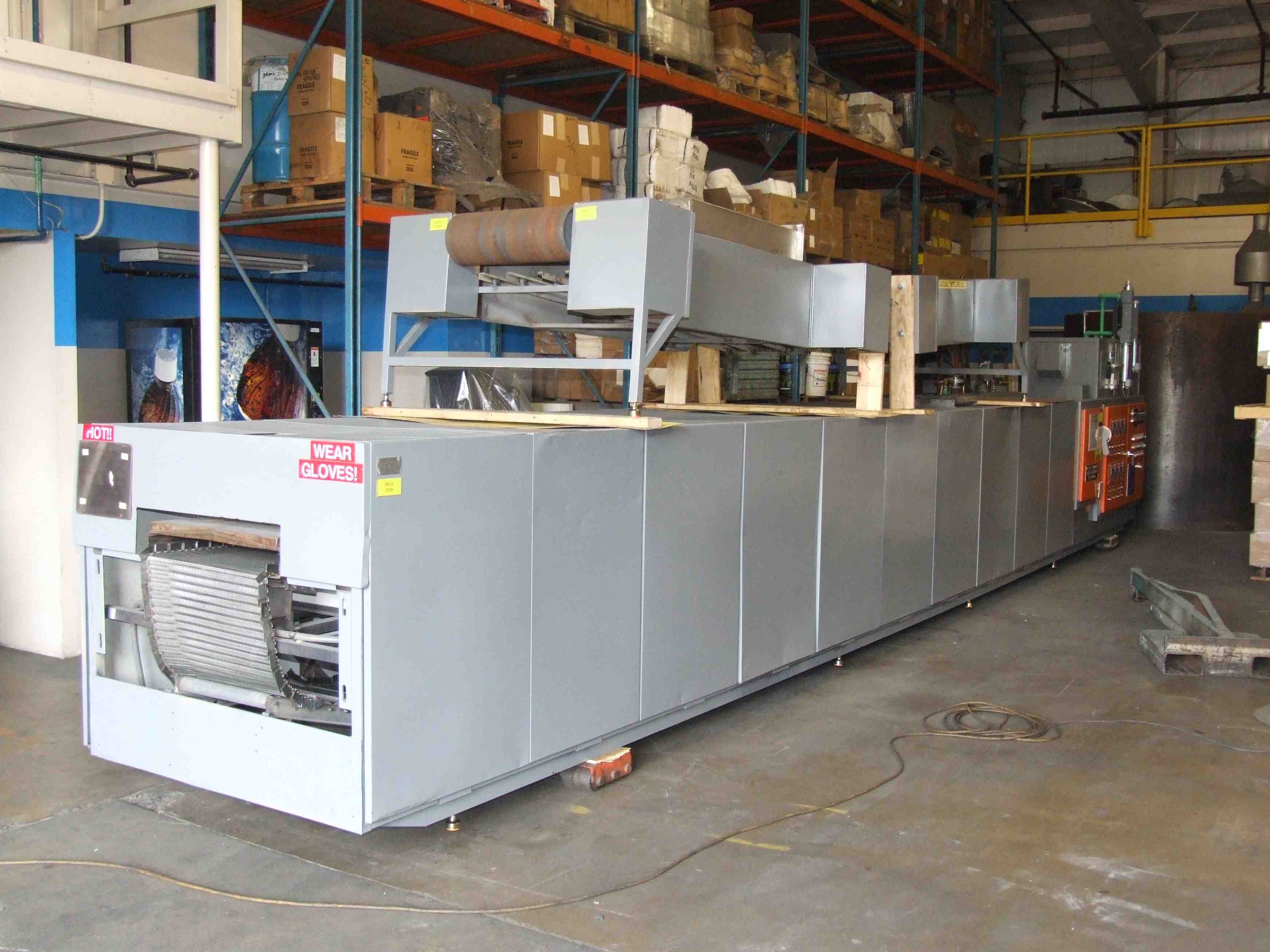 WATKINS-JOHNSON FURNACE MODEL # CA24-250 1994 (RECENTLY REFURBISHED TO FACTORY-NEW CONDITION) CONTINUOUS MESH BELT FURNACE 1200 Lbs per hour @ 1,400°F operating temperature 2,000°F maximum temperature 480 VAC 3 Phase 60 Hz. Electrically heated New 24” wide SS belt with side plates New Hi-Watt temperature controllers New Honeywell hi-limits New Waukee Flo-Tronic flow meters for nitrogen/hydrogen atmosphere New Honeywell QXE paperless recorder Gas-tight Inconel 601 muffle All heating elements tested & functional AVAILABLE FOR IMMEDIATE DELIVERY |