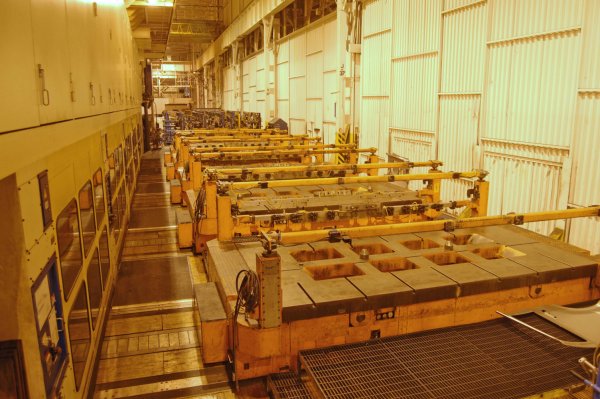 NEW IN 1995 MODEL TBS6-5800-5-2300 LINK DRIVE 5-SLIDE CROSS BAR TRANSFER PRESS 10 MOVING BOLSTERS CAPACITIES: 2200 TON STATION 1 1000 TON STATION 2 1000 TON STATION 3 800 TON STATION 4 800 TON STATION 5 SLIDE 1: (LINK DRIVE) 2200 TON 43.3 STROKE (1100mm) SLIDE 2: (ECCENTRIC) 1000 TON 45.7" STROKE (1160mm) 55" SHUT HEIGTH (1400mm) 4" ADJUSTMENT (102mm) (5) 180" X 96" BED AREA (4500 X 2400mm) 8-14 SPM 90.5" TRANSFER RAIL FEED (EACH PRESS STROKE) 22" X 36" MINIMUM BLANK SIZE 76" X 162" MAXIMUM BLANK SIZE EQUIPPED WITH: MOTOR & CONTROLS 10 MOVING BOLSTERS - 2 BOLSTERS PER STATION 5 SLIDES CROSS BAR TRANSFER SYSTEM SCHULEDR "POGO-STYLE" BLANK DESTACKER - 186" X 96" MAX DCT WASHER UTICA RE-OILERS - EDF UPGRADE GUNS DCT DESTACKER ALLEN BRADLEY PLC PANELVIEW LOWER CUSHION - 4 CUSHIONS - 81 - 400 TON - 13" STROKE APPROX O.A. WEIGHT: 2700 TON APPROX O.A. DIMENSIONS: 156' X 80' X 30' USED TO PRODUCE AUTOMOBILE HOODS, ROOFS, DOORS, DECKS, FLOORPLANS AND OTHER LARGE OUTER PANEL PARTS AND LARGE INNER PARTS. BOTH DOUBLE ATTACHED AND DOUBLE UNATTACHED PARTS. IN PLANT UNDER POWER |