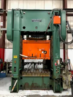 200 ton Capacity 6" Stroke 24" Shut Height 18" Motorized Adjustment 60" LR x 42" FB Bed Area 60" LR x 42" FB Slide Area 30-80 VSPM Equipment and Features Air Clutch and Brake Air Counterbalances Recirculating Lube System T-Slotted Ram and Bolster 30.5" wide Windows Motors and Controls Floor Standing Overall Height 186" Above the Floor |