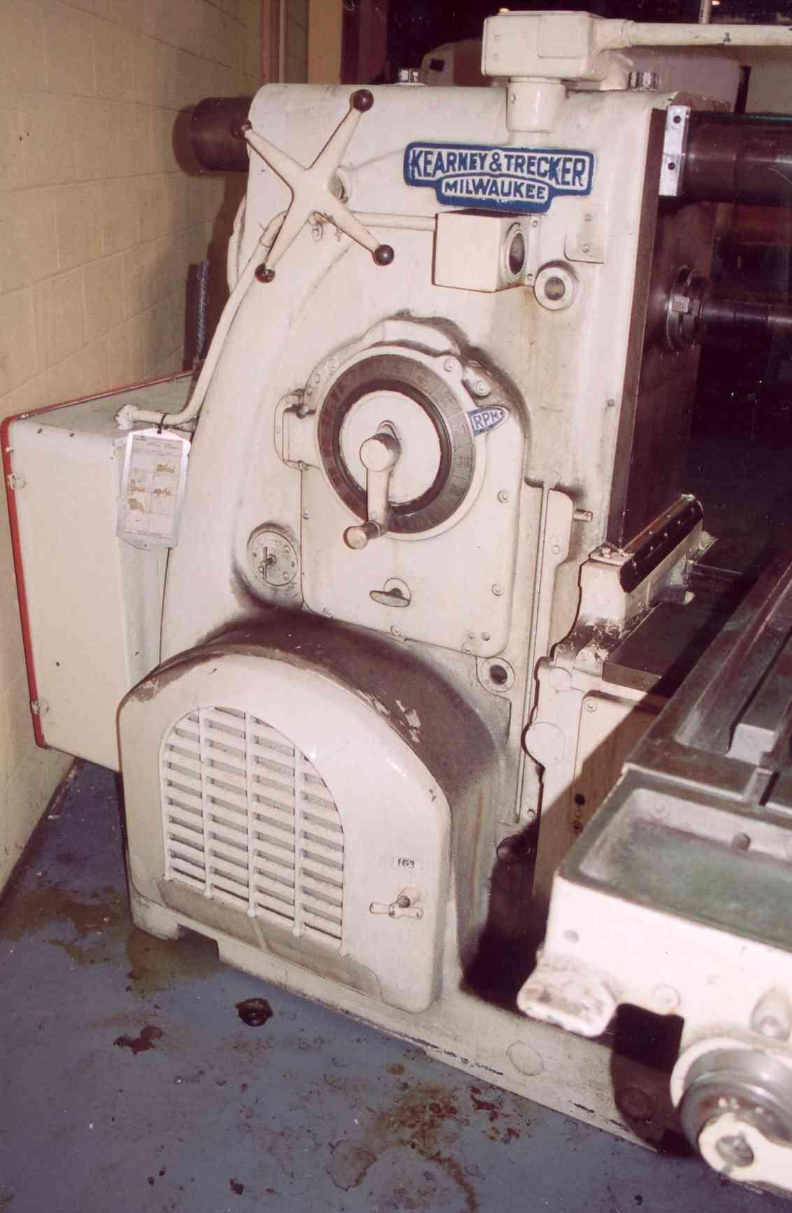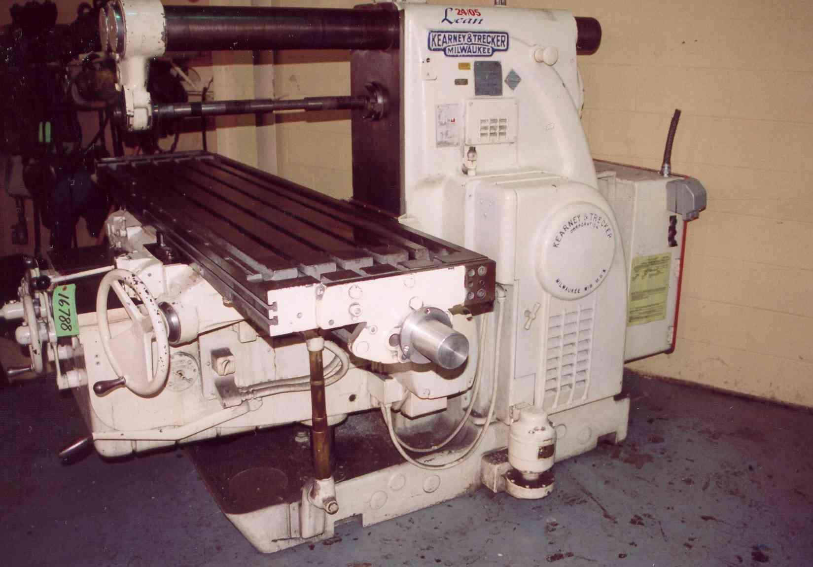 SERIAL .......................... 32-8207 MODEL ........................... 430-TF20 AREA OF TABLE ................... 80" X 20" SPINDLE SPEEDS .................. (18) 15 TO 1500 RPM LONGITUDINAL AND CROSS FEEDS .... (32) 3/8 TO 90 IPM VERTICAL FEEDS .................. (32) 1/8 TO 30 IPM LONGITUDINAL TRAVEL ............. 42" CROSS TRAVEL .................... 14" VERTICAL TRAVEL ................. 17" CENTER OF SPINDLE TO TABLE ...... 0" MIN, 17" MAX TAPER IN SPINDLE ................ #50NS OVERARM SUPPORT ................. YES COOLANT ......................... YES SPINDLE MOTOR, HORSEPOWER ....... 30 FEED MOTOR, HORSEPOWER .......... 5 |