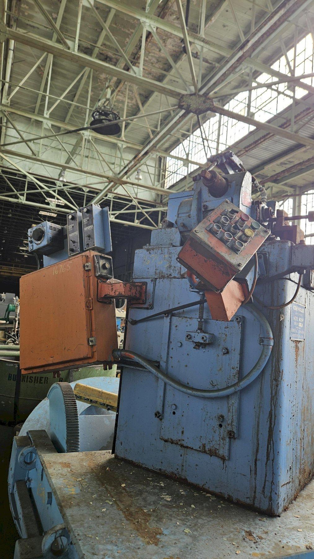 SERIAL .................................... T/IA-441 MODEL ..................................... MC5-F MAXIMUM THROUGH FEED DIAMETER ............. 1-1/2" MAXIMUM IN-FEED DIAMETER .................. 2" MAXIMUM INFEED LENGTH ..................... 2-1/2" MINIMUM PART DIAMETER ..................... .020" MAXIMUM DIE WIDTH ......................... 2-1/2" SPINDLE DIAMETER .......................... 1-1/2" ADJUSTABLE SKEW ........................... 0 TO 5 DEGREE MAXIMUM DIE LOAD .......................... 12,900# THROUGH FEED OR INFEED .................... YES SPINDLE MOTOR, HORSEPOWER ................. 10 HYDRAULIC UNIT & MOTOR INCLUDED TO CLOSE DIES |