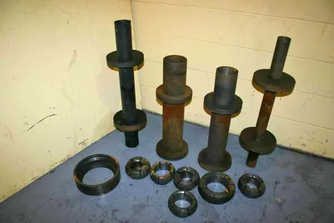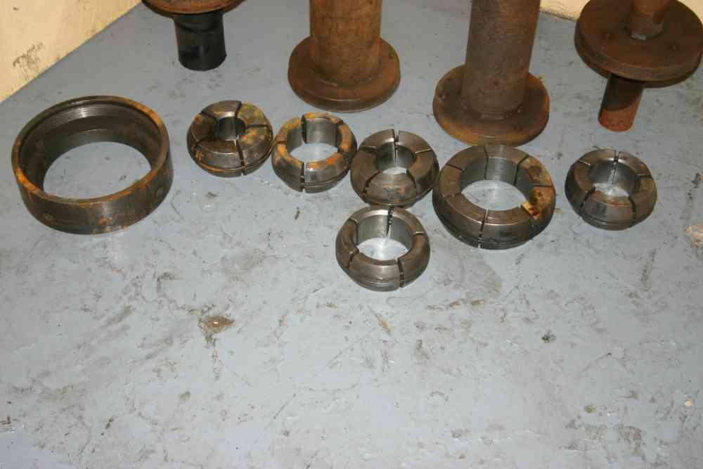 STOCK NUMBER CONSISTS OF THE FOLLOWING: FOUR SPINDLE TUBES: INSIDE DIAMETER OF TUBES ........... 2-1/8", 3-1/8", 4", 5-1/2" SIX SETS OF COLLETS: COLLET SIZE ........................ 2", 2-1/2", 3", 3-1/2", 4", 4-1/2" ONE COLLET NOSE: |
