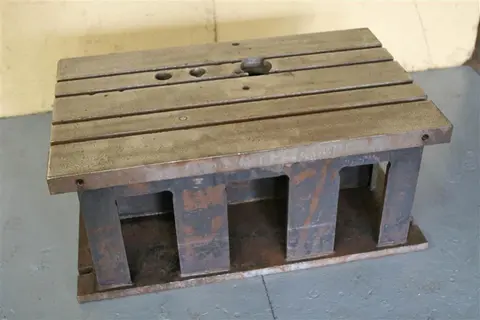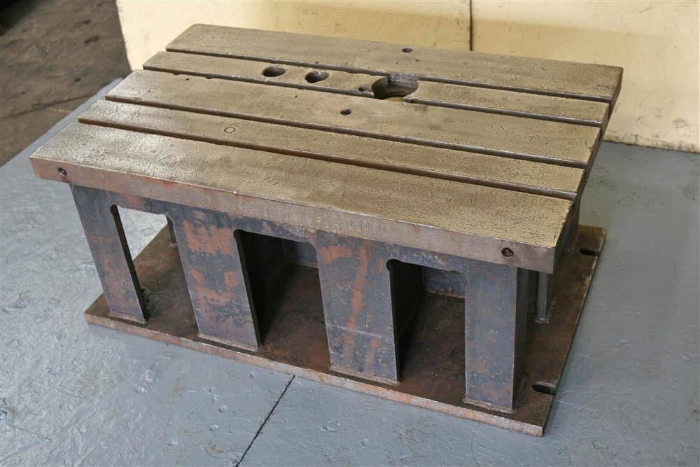 LENGTH OF TABLE .......................... 42" WIDTH OF TABLE ........................... 26" HEIGHT OF TABLE .......................... 18" NUMBER OF T SLOTS ........................ 4 WIDTH OF T SLOTS ......................... 7/8" DEPTH OF T SLOTS ......................... 1-3/8" WIDTH OF T SLOTS AT BOTTOM ............... 1-3/8" DISTANCE FIRST SLOTS FROM EDGE OF PLATE .. 6" DISTANCE FROM FIRST SLOT TO SECOND SLOT .. 4" DISTANCE BETWEEN CENTER SLOTS ............ 6" STEEL FABRICATED ......................... YES |