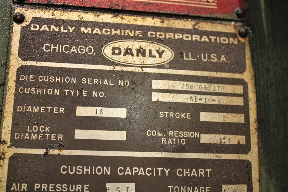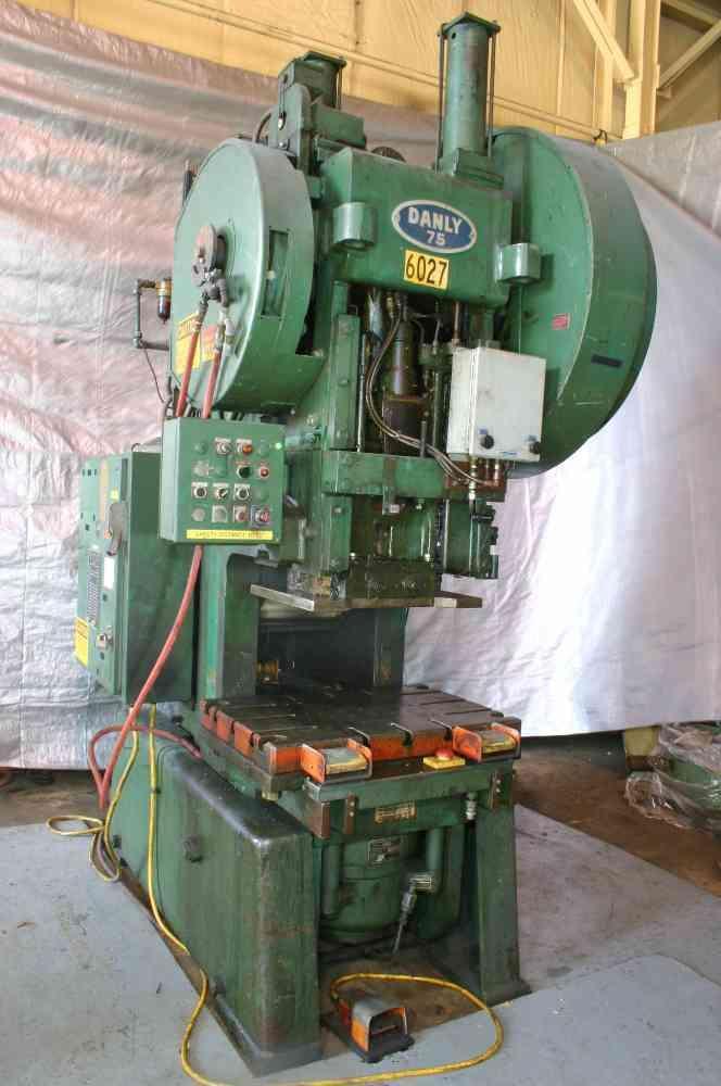 SERIAL ................................... 7560550179 MODEL .................................... 75 OBI CAPACITY ................................. 75 TON STROKE OF SLIDE .......................... 5" SLIDE ADJUSTMENT ......................... 3" SHUT HEIGHT, SDAU ........................ 15" AREA OF BED .............................. 36" X 24" AREA OF SLIDE ............................ 17" X 15" STROKES PER MINUTE ....................... 40 WIDTH OF HOLE THROUGH BACK ............... 19" DEPTH OF THROAT .......................... 12" BOLSTER, T SLOTTED ....................... 23" X 24" X 3-1/2" DANLY AIR CUSHION, TYPE AI-16-2 .......... 16" DIA, 2" STROKE AIR CUSHION CAPACITY ..................... 10 TON AIR CLUTCH AND AIR BRAKE ................. YES AIR COUNTER BALANCE ...................... YES DUAL PALM BUTTONS ........................ YES SINGLE BACK GEARED ....................... YES MOTOR, HORSEPOWER ........................ 7-1/2 |