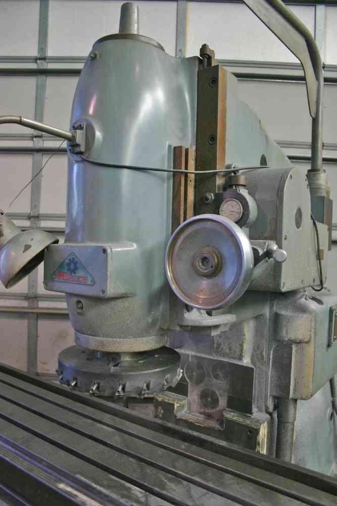 SERIAL ............................. 1 3004-964-28 MODEL .............................. FYA41M AREA OF TABLE ...................... 78" X 15-3/4" SPINDLE SPEEDS ..................... (21) 28 TO 1300 RPM LONGITUDINAL FEEDS ................. (32) 1/2 TO 42 IPM CROSS FEEDS ........................ (32) 3/8 TO 31-5/8 IPM VERTICAL KNEE FEEDS ................ (32) 1/4 TO 20 IPM VERTICAL RAM FEEDS ................. (16) 1/4 TO 80 IPM LONGITUDINAL TRAVEL ................ 41-3/4" CROSS TRAVEL ....................... 14-3/16" VERTICAL KNEE TRAVEL ............... 13-13/16" VERTICAL RAM TRAVEL ................ 5-1/2" DISTANCE SPINDLE NOSE TO TABLE ..... 0" MIN, 20" MAX DEPTH OF THROAT .................... 18-1/2" TAPER IN SPINDLE ................... #50 NS RAPID TRAVERSE ..................... 99 IPM SPINDLE MOTOR, HORSEPOWER .......... 15 |