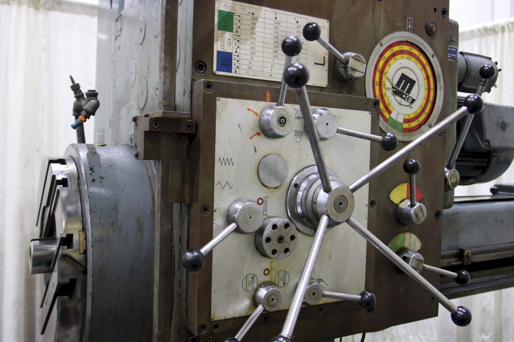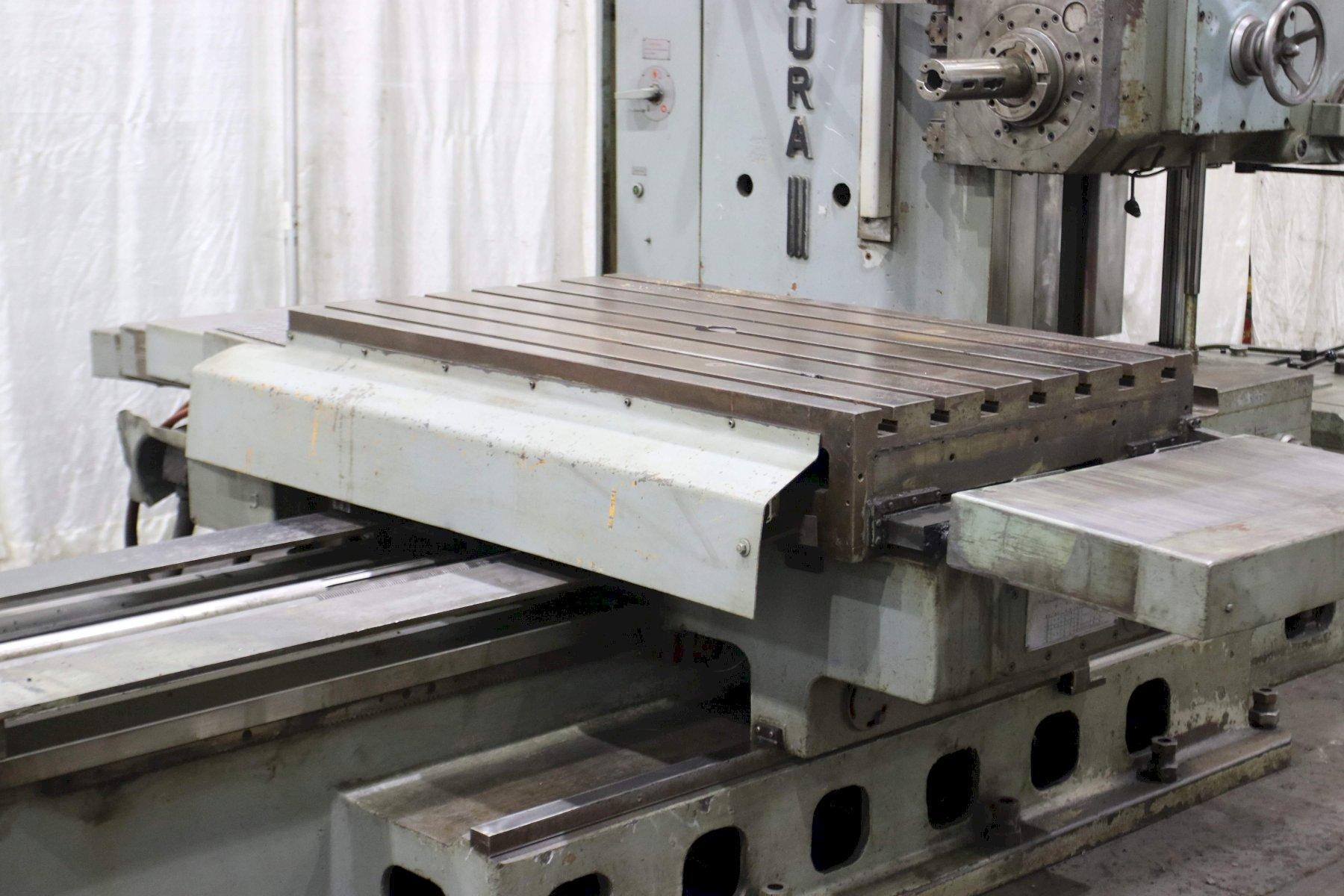SERIAL ............................. 4235 MODEL .............................. BFT-9 DIAMETER OF SPINDLE ................ 3-1/2" AREA OF TABLE ...................... 35" X 59" SPINDLE TRAVEL ..................... 27" VERICAL TRAVEL OF HEAD ............. 37-1/4" CROSS TRAVEL ....................... 47" LONGITUDINAL TRAVEL ................ 43 SPINDLE SPEEDS ..................... (18) 10.4 TO 1000 RPM FEEDS .............................. (54) 0.0013 TO 1.1111 IPR 4 BED WAY CONSTRUCTION ............. YES PENDANT ............................ YES HARD WAYS .......................... YES RAPID TRAVESES ..................... 53 IPM TAPER IN SPINDLE ................... #5MT TABLE LOAD CAPACITY ................ 13,230 LBS MOTOR .............................. 15 HORSEPOWER |