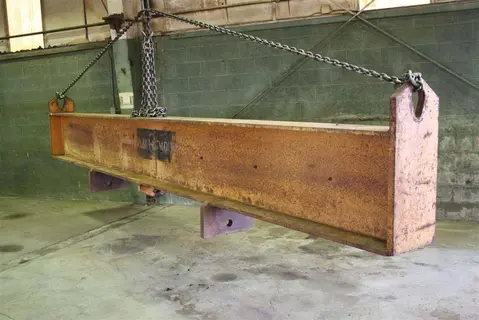 CAPACITY ....................... 54,000 LBS OVERALL LENGTH ................. 19' (228") BEAM SIZE ...................... 24" HIGH X 14" WIDE THICKNESS OF FLANGE WITH HOLE .. 1-1/2" CENTER DISTANCE HOLE TO BEAM ... 8" DISTANCE BETWEEN PICK TABS ..... 96" CENTER LIFTING PIN ............. YES, 3" DIAMETER OVERALL WIDTH .................. 46" |