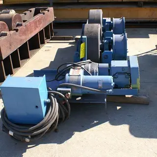 SERIAL NUMBER .............. 352494 MODEL ...................... BPRR 15 SET DOWN WEIGHT CAPACITY ... 15 TON TURNING CAPACITY ........... 45 TON DIAMETER CAPACITY .......... 8" TO 8' RUBBER WHEELS .............. 7" WIDE X 20" DIAMETER VARIABLE SPEED ............. 1.5 TO 59 IPM VOLTAGE .................... 230 OR 460 |