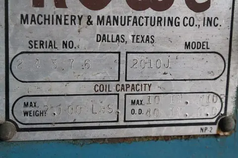 SERIAL ................... 24576 MODEL .................... 2010-JPR YEAR ..................... 1965 MAX COIL WEIGHT .......... 2000 LBS MAX COIL O.D. ............ 40" MAX COIL WIDTH ........... 10" EQUIPPED WITH: AIR DRIVE MOTOR DANCER ARM CONTROL ELECTRIC CABINET & 3 BUTTON CONTROLS CONDITION ............... GOOD WEIGHT .................. 500 OVERALL DIMENSIONS ...... 2' FB X 4'6" LR X 3' H |