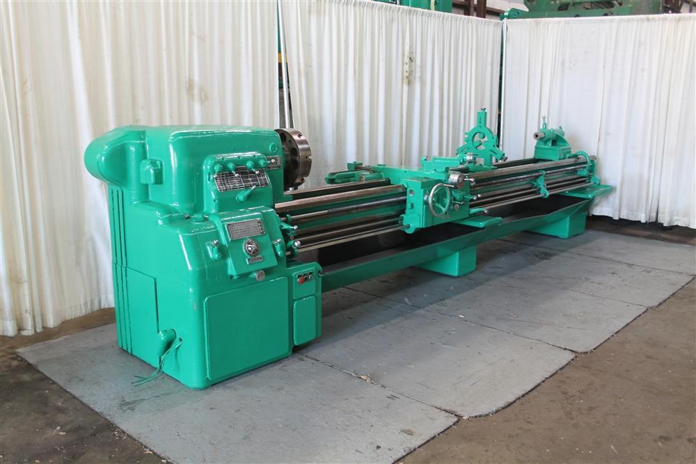 SERIAL ............................. 43468 SWING OVER WAYS .................... 20" SWING OVER CARRIAGE ................ 13" DISTANCE BETWEEN CENTERS ........... 150" SPINDLE SPEEDS ..................... 28 TO 1200 RPM FEEDS .............................. .0022 TO .1366 THREADS ............................ 1 TO 60 TPI SPINDLE HOLE ....................... 2" 4 JAW CHUCK ........................ 15" STEADY REST ........................ 7" ROLLER TYPE TAPER ATTACHMENT ................... YES CHIP PAN ........................... YES HARD WAYS .......................... YES MAIN MOTOR ......................... 15 HORSEPOWER |
