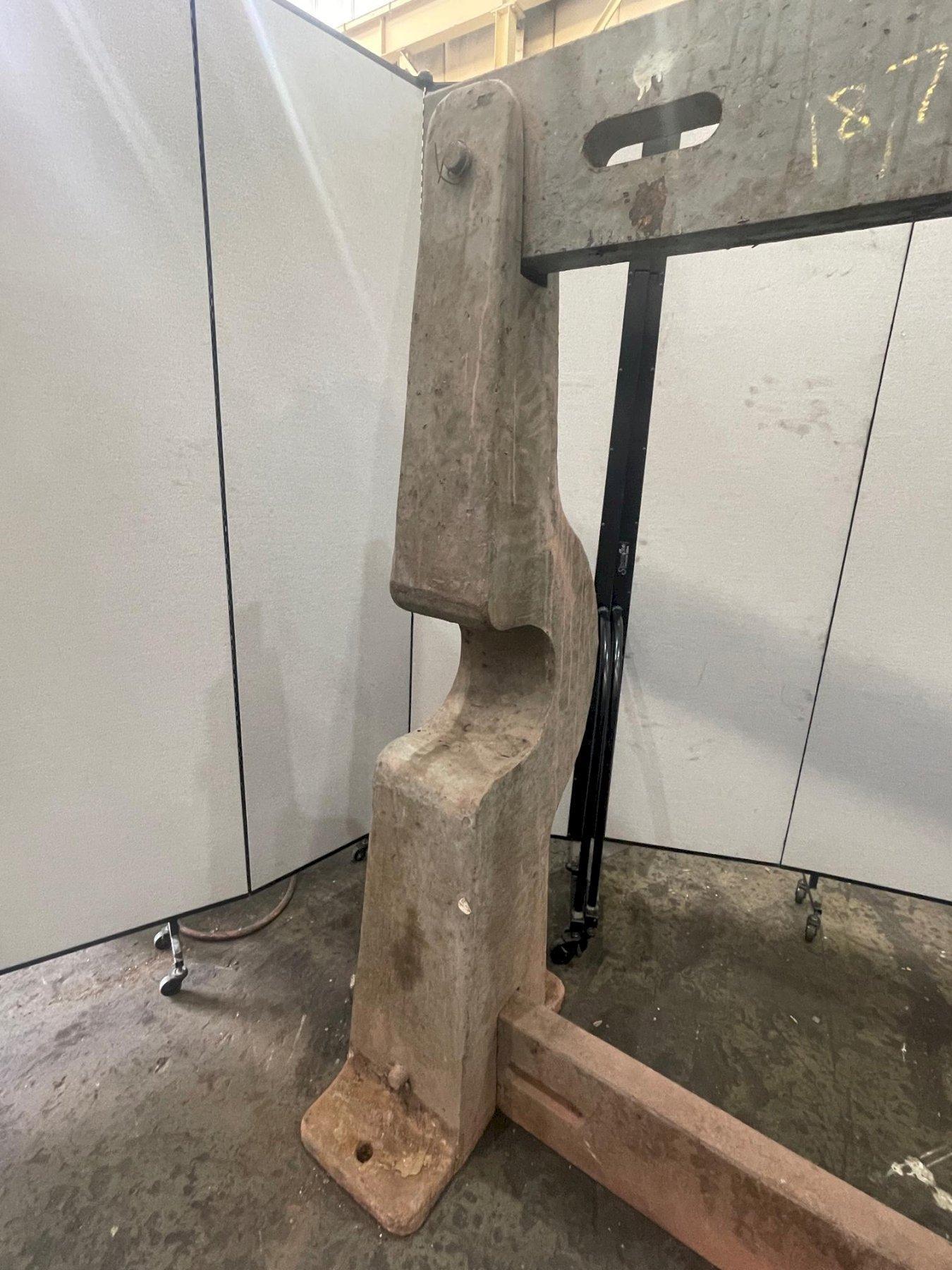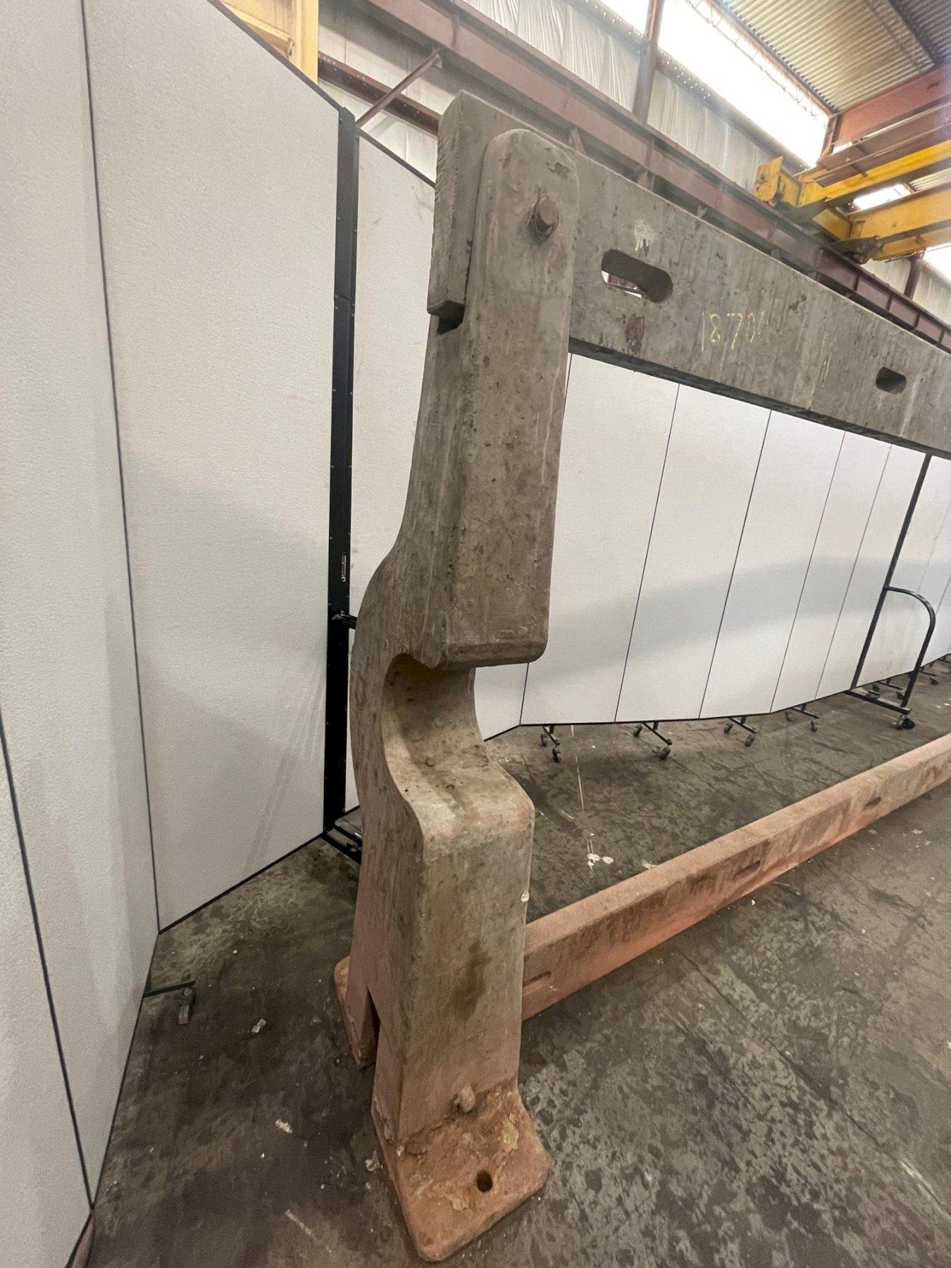 SERIAL ..................................... 360-SE CAPACITY EST................................ 250 TONS STROKE ..................................... 24" DIAMETER OF CYLINDER ....................... 12" DISTANCE BETWEEN STRAN BARS ................ 54" MAXIMUM DISTANCE RAM TO RESISTANCE BLOCK ... 25' HOLE THROUGH RESISTANCE BLOCK .............. 10" LENGTH OF RESISTANCE BLOCK ................. 28" WIDTH OF STRAN BARS ........................ 3" 7 RESISTANCE BLOCK ADJUSTMENT HOLES ........ 33-1/2" APART 3 STAGE PUMP ............................... YES |