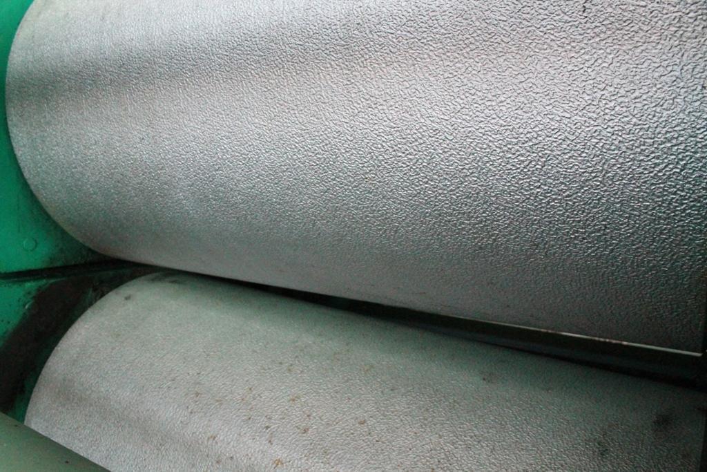 TOOLED FOR STUCCO PATTERN ENTRY SHEET FEED ......... YES EDGE GUIDES .............. YES STRAIGHTENER ............. YES HYDRAULIC ROLL PRESSURE .. YES LINK HERRING BONE ........ YES AC MOTOR & CONTROLS ...... YES ** SPARE SET OF ROLLS AVAILABLE CONSISTING OF: BEARINGS, CHOCKS, GEARS |