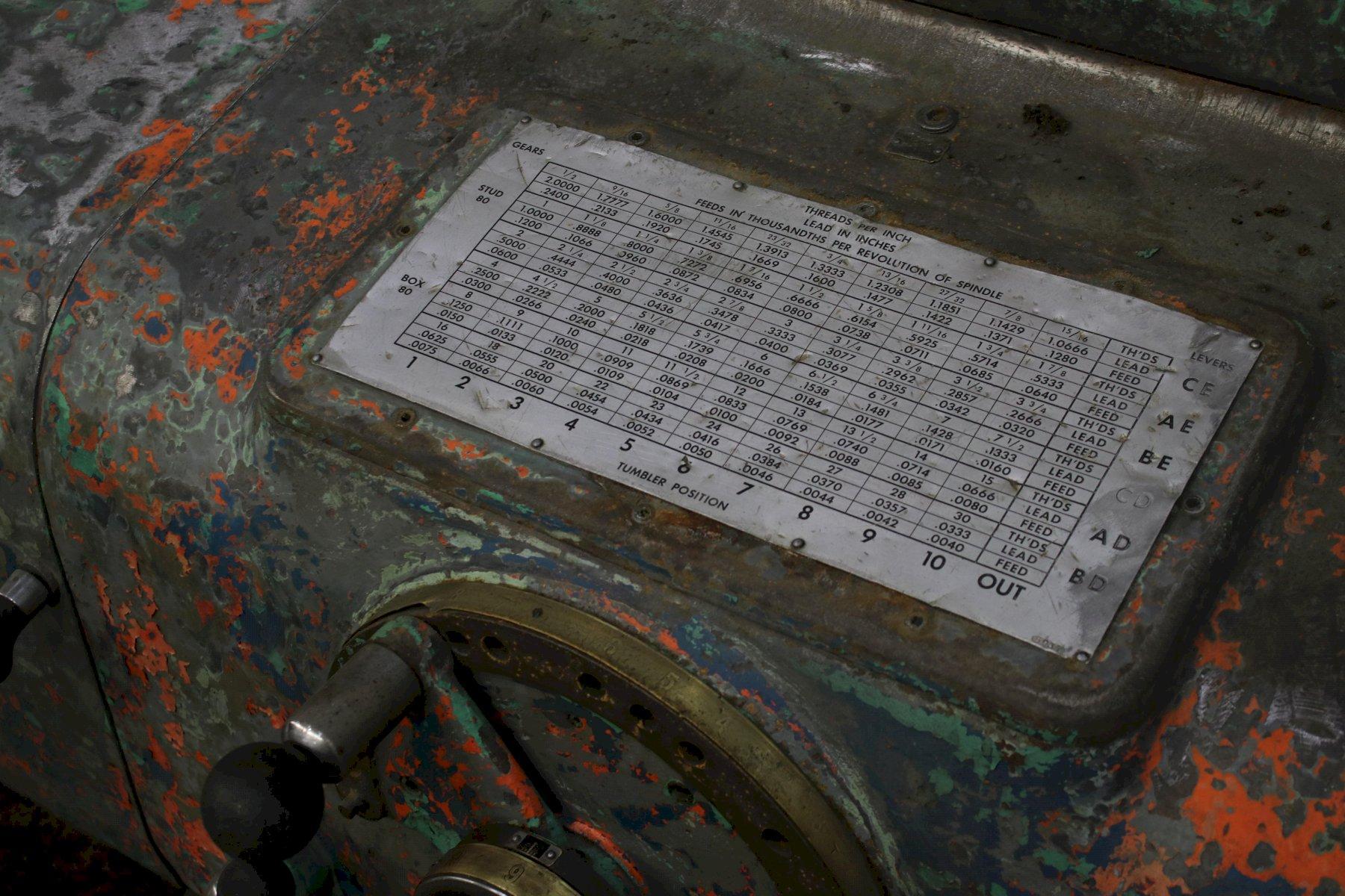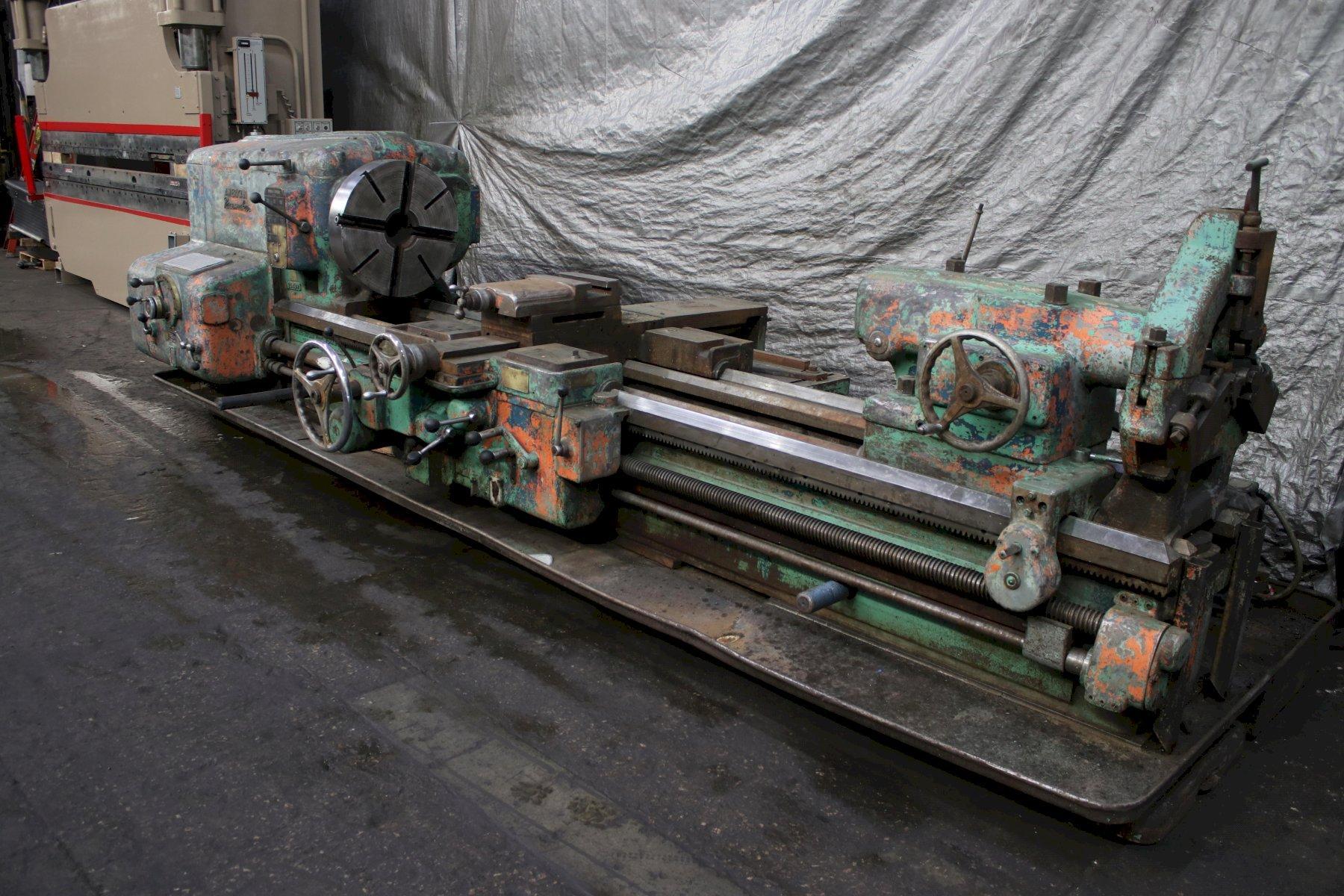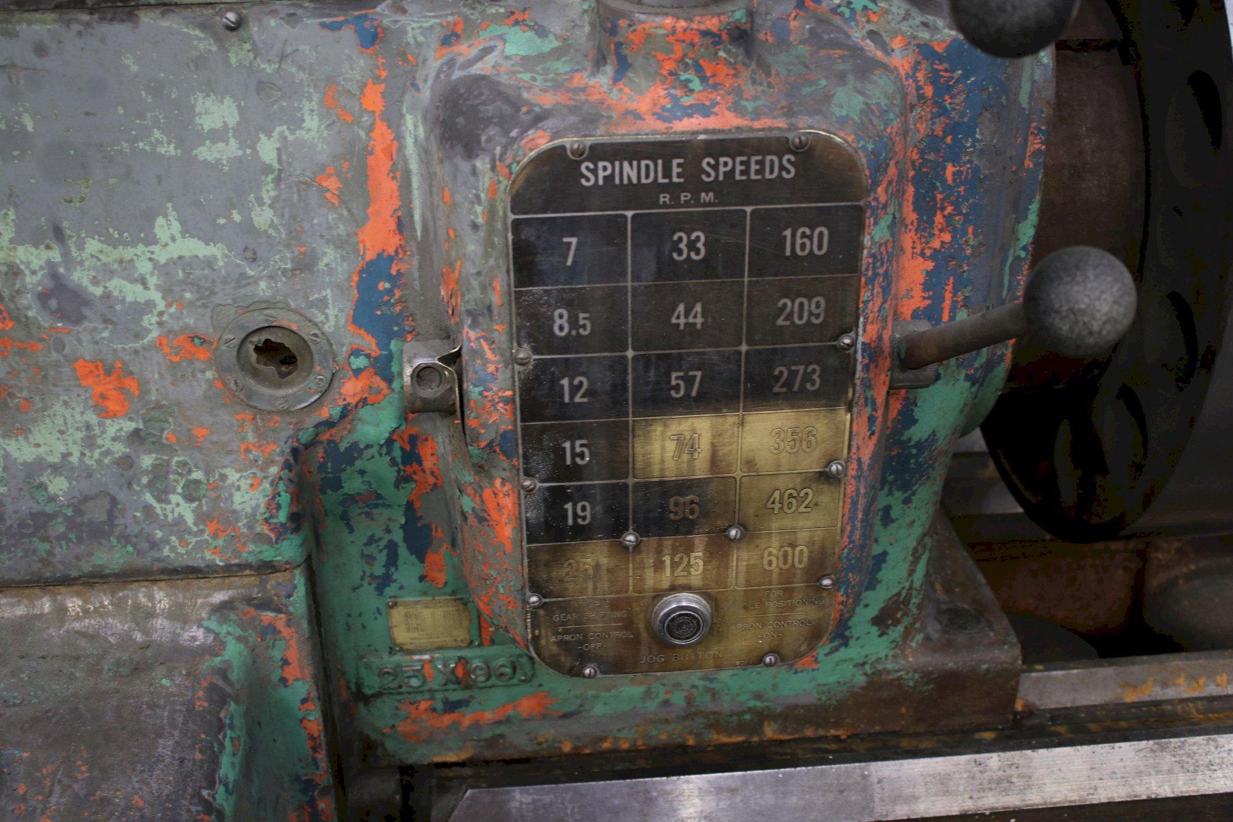 SERIAL ......................... 72931-52 MODEL .......................... 25 SWING OVER WAYS ................ 32" SWING OVER CROSS SLIDE ......... 20" DISTANCE BETWEEN CENTERS ....... 96" SPINDLE SPEEDS ................. (15) 7 TO 600 RPM THREADS ........................ (60) 1/2 TO 30 TPI FEEDS .......................... (120) .0040 TO .24000 IRP LEADS .......................... .0033 TO 2.000 SPINDLE HOLE ................... 2-3/4" STEADY REST .................... 12" 3 POINT ROLLER RAPID TRAVERSE ................. YES 4 JAW CHUCK .................... 24" TAPER ATTACHMENT ............... YES THREAD DIAL .................... YES FOLLOW REST .................... YES CHIP PAN WITH COOLANT .......... YES HARD WAYS ...................... YES JOG & FORWARD & REVERSING ...... YES MAIN MOTOR ..................... 30 HORSEPOWER |