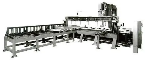 CROSS CUT/RIP PLATE SAW SERIAL ....................... 88013 MODEL ........................ 6024MH NEW .......................... 1988 RIP CUTTING BARS: CAPACITY ..................... 24"T X 30"W X 144"L UNDER GUIDE CAPACITY .......... 24" BACK GAUGE CAPACITY (MAX) .... 0-30"W FEED TABLE ................... 4'W X 12"L CROSS CUTTING (BLOCKS) TABLE CAPACITY ............... 24"T X 60"W X 16' CUTTING CAPACITY ............. 24"T X 60"W X 60"L FEED TABLE ................... 52"W X 12'L WORK TABLE HEIGHT ............ 36" WORK HOLDING CLAMPS: BRIDGE CLAMP TOTAL ........... 7 CAPACITY ..................... 24" DRIVE/MOTOR .................. 15 HP CUTTING SPEEDS ............... 80-3600 SPM BLADE WIDTH (MAX) ............ 2" FEED TABLE (CROSS CUT) ....... 52"W X 16'L |