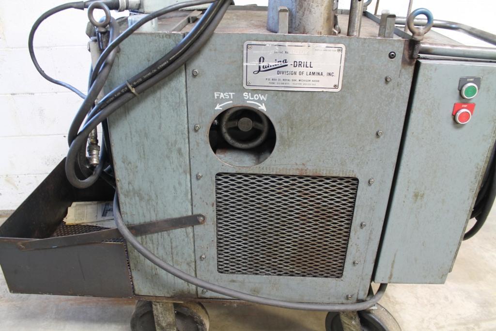 SERIAL OF HYDRAULIC UNIT ............. P1167 SERIAL OF DRILLING HEAD .............. B297 MODEL ................................ 2B10065 DRILLING CAPACITY .................... 1" TAP CAPACITY ......................... 1" - 8" SPINDLE SPEEDS (VARIABLE) ............ TO 420 RPM FEED ................................. HAND TAPER ................................ #3 STROKE ............................... 110-7/16" TORQUE ............................... 1000 INCH LBS MAGNETIC CAPACITY (PULL FORCE) ....... 2300 LBS PENDANT CONTROLS ..................... YES MAGNETIC BASE ....................... 6-1/2" DRILL HEIGHT ......................... 20-3/4" MOTOR HORSEPOWER ..................... 7-1/2 |
