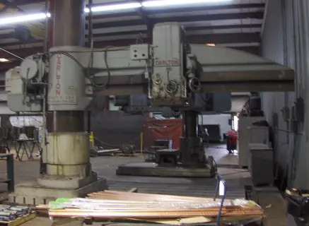 SERIAL ............................ 5A-1413 MODEL ............................. 5A SPINDLE DIAMETER .................. 4" SPINDLE TRAVEL .................... 24" TAPER IN SPINDLE .................. #6 MT FEEDS ............................. (18) .004" - .125" SPEEDS ............................ (16) DISTANCE SPINDLE TO BASE .......... 24" MIN, 96" MAX VERTICAL TRAVEL OF ARM ON COLUMN .. 56" HORIZONTAL TRAVEL OF HEAD ON ARM .. 128" MOTOR ............................. 50 HP OVERALL DIMENSIONS ................ 14'9" X 4'9" X 14'8" HIGH |