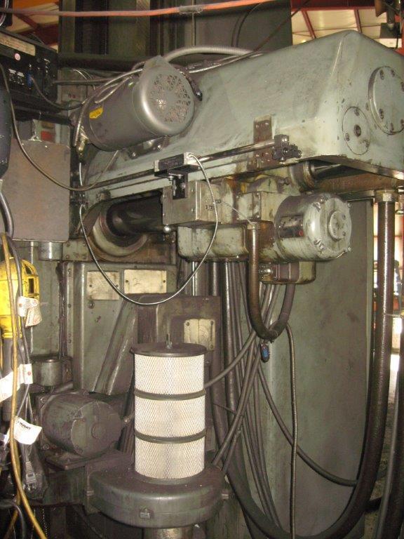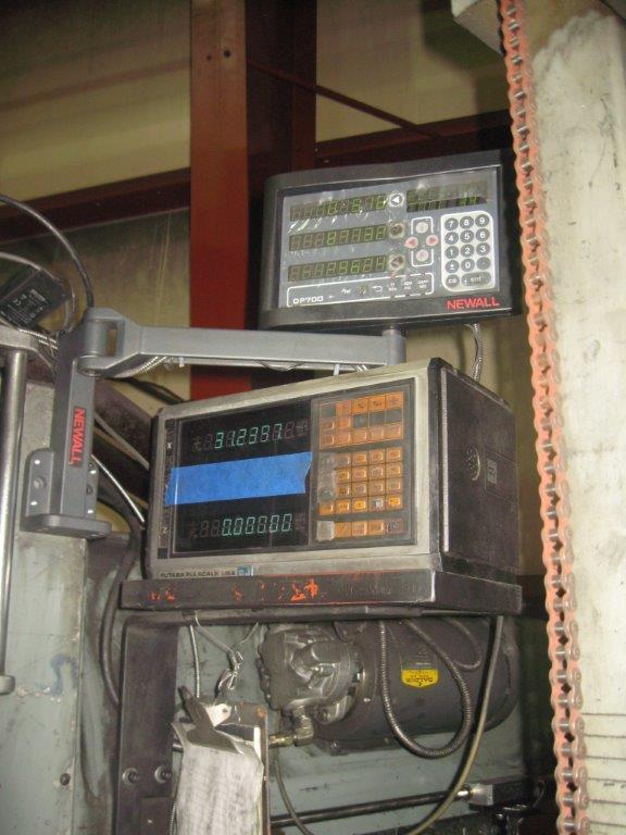 SERIAL .............................. 8763 MODEL ............................... 5H-96 DIAMETER OF SPINDLE ................. 5" AREA OF TABLE ....................... 50" X 96" LONGITUDINAL TABLE TRAVEL ........... 96" VERTICAL HEAD TRAVEL ................ 60" TABLE RETRACTION .................... 24" SPINDLE SPEEDS (INFINITE VARIABLE) .. 10 TO 1000 RPM SPINDLE FEEDS ....................... .003 TO .036 IPM RAPID TRAVERSE ...................... 100 IPM MILLING FEED RATES .................. 50 TO 150 IPM FLOOR TO TABLE TOP .................. 42" TAPER IN SPINDLE .................... 50 NS DIGITAL READOUTS .................... NEWALL GREEN BUTTONS ....................... YES MOTOR ............................... 20 HORSEPOWER |