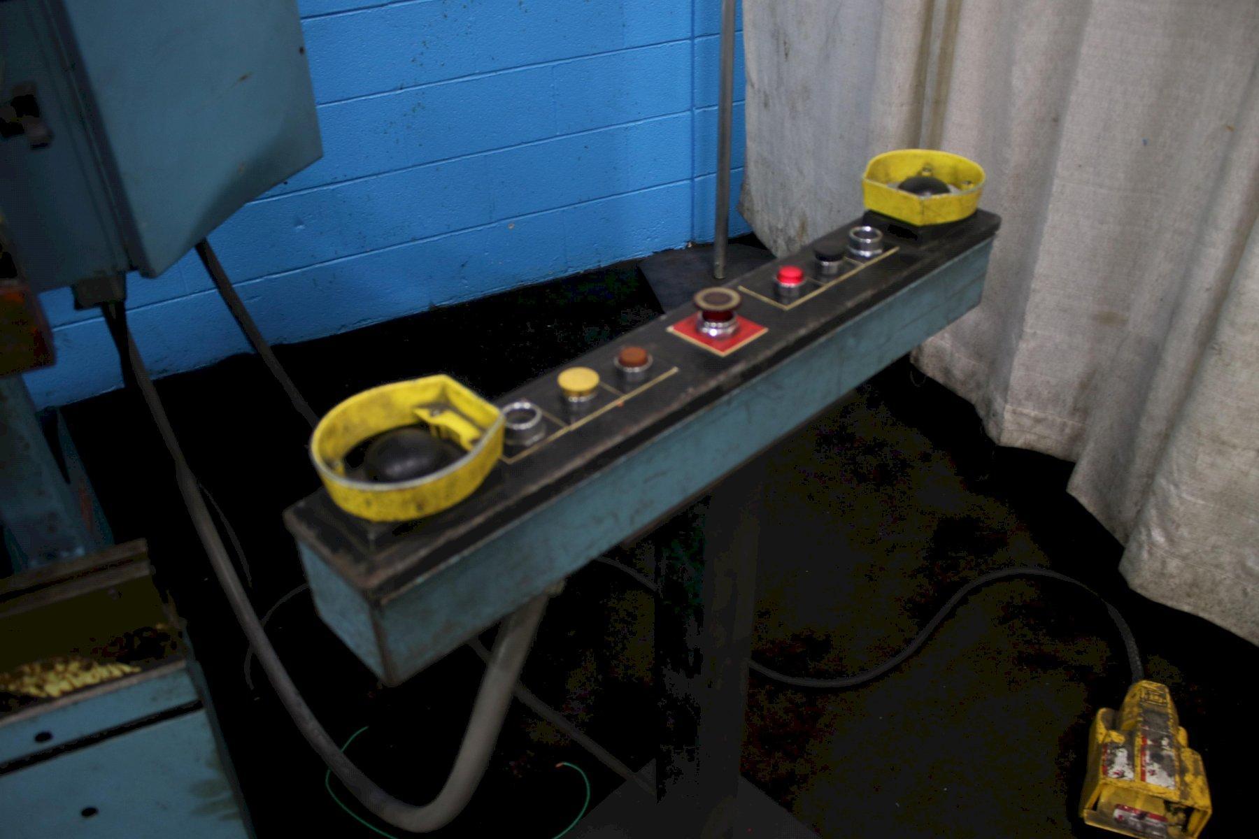 SERIAL ...................... 54034 MODEL ....................... HB-55-4-6 YEAR NEW .................... 1994 CAPACITY .................... 55 TON LENGTH OF BED & RAM ......... 72" DISTANCE BETWEEN HOUSING .... 54" STROKE ...................... 0" TO 6" OPEN HEIGHT ................. 13" CLOSED HEIGHT ............... 7" DEPTH OF THROAT ............. 6" RAM SPEED FORMING ........... 16 IPM RAM SPEED APPROACH .......... 157 IPM RAM SPEED RETURN ............ 157 CNC BACK GAUGE .............. AUTOMEC 1000 PASSLINE HEIGHT ............. 34" DIAL PAM BUTTONS ............ YES SINGLE & INCHING ............ YES MOTOR ....................... 5 HORSEPOWER |