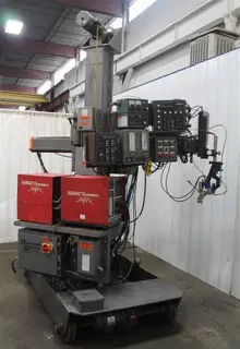 SERIAL .......................... 25A947 MODEL ........................... M140401P CAPACITY ........................ 6' X 4' TRAVEL CAR SPEED ................ CONSTANT LIFT SPEED ...................... 34 IPM BOOM TRAVEL HEIGHT .............. 19-1/2" TO 91-1/2" REACH ........................... 4' REACH SPEED VARIABLE ............ 1.8 TO 180 IPM MAST CAPACITY ................... 250 LBS MAST ROTATION ................... 360 DEGREE JETLINE WIRE FEED SYSTEM ........ HWF-200D/CWF-10A JETLINE HOT WIRE POWER SUPPLY ... HFW-200D JETLINE HOT WIRE CONTROL ........ 9302B ARC LENGTH CONTROL .............. ACL 101 6" VERTICAL POWERED SLIDE THERMAL DYNAMIC PLASMA WELDER ... PS-3000 WSE CONTROL PACKAGE ............. YES CIRCULATOR ...................... WC 100B PENDANT CONTROL ................. YES |