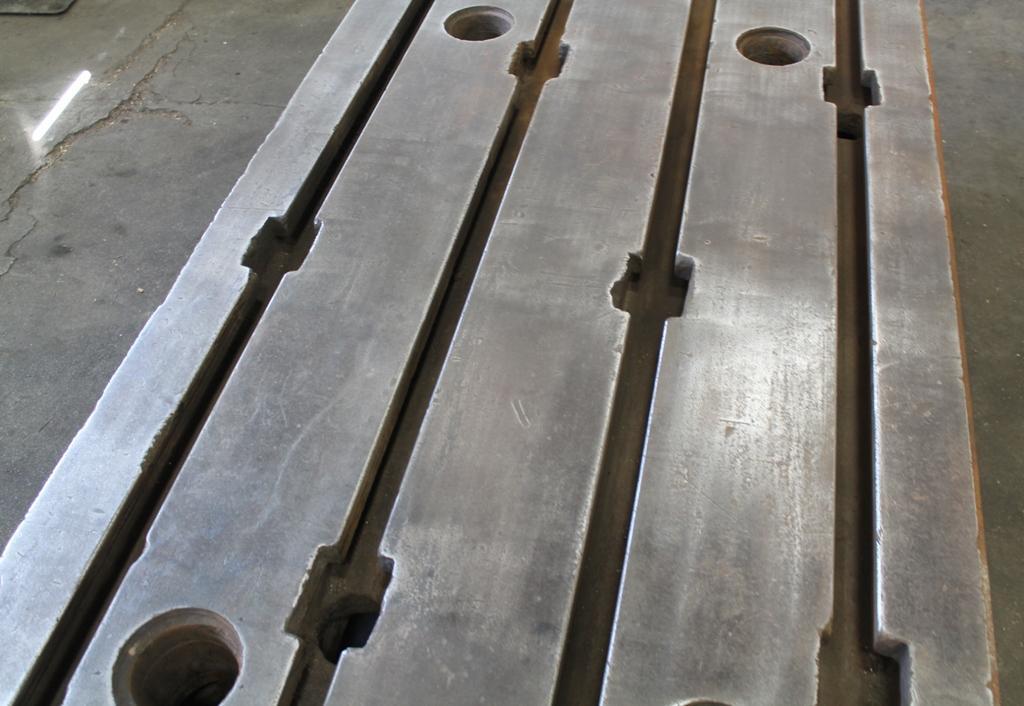 WIDTH OF PLATE ................. 40" LENGTH OF PLATE ................ 77-3/4" HEIGHT OF TABLE ................ 17-3/4" NUMBER OF T SLOT ............... 4 T SLOT CENTERS ................. 10" T SLOT WIDTH AT TOP ............ 1-3/4" T SLOT DEPTH .................. 2-3/4" T SLOT WIDTH AT BOTTOM ......... 3-1/4" LEVELING HOLES IN TOP .......... YES |