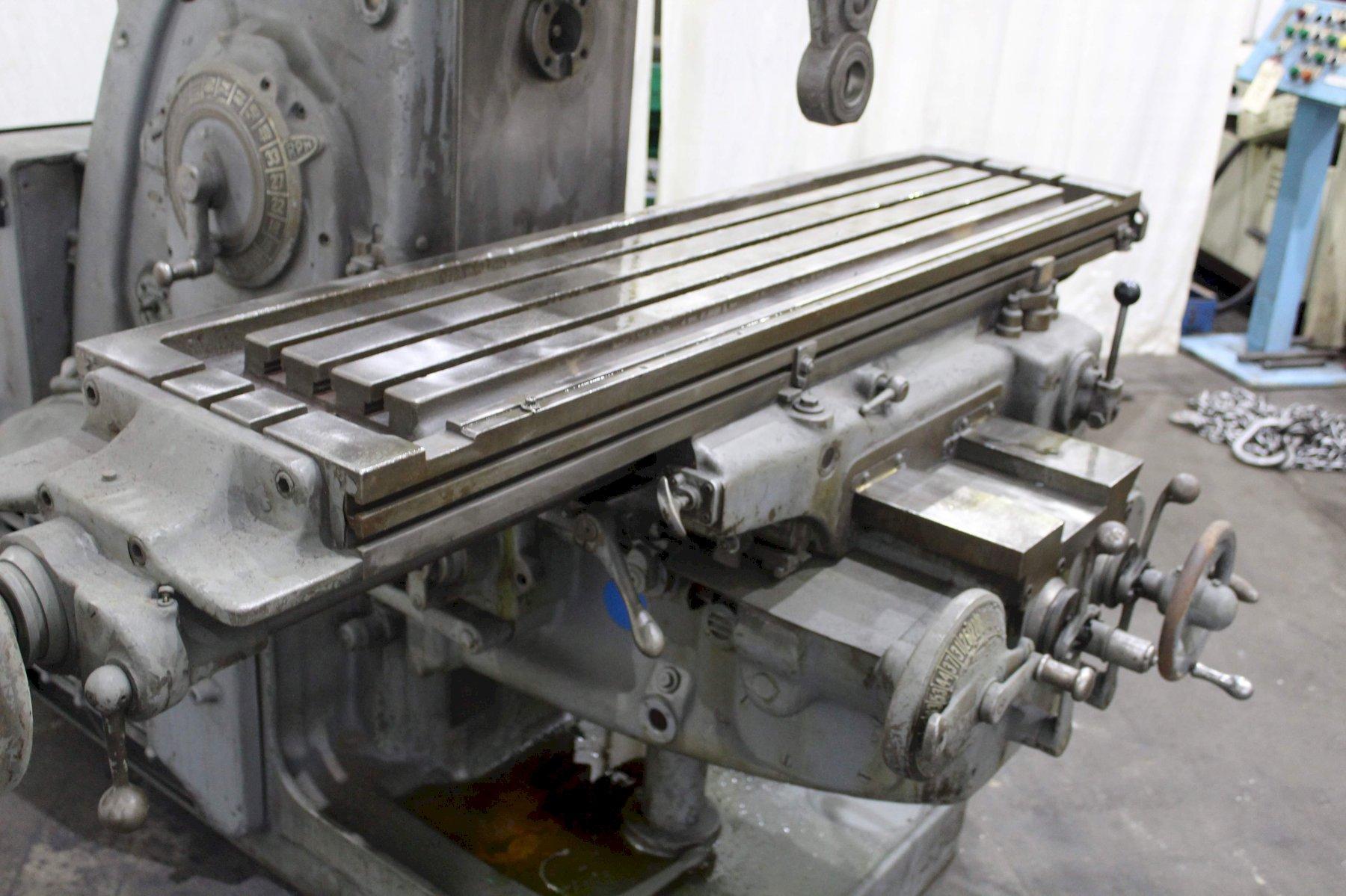 SERIAL ............................ 17-6731 MODEL ............................. 3CK AREA OF TABLE ..................... 63-1/2" X 16-1/2" SPINDLE SPEEDS .................... (24) 15 TO 1500 RPM LONGITUDINAL & CROSS FEEDS ........ (32) 3/8 TO 90 IPM VERTICAL FEEDS .................... (32) 3/16 TO 45 IPM LONGITUDINAL TRAVEL ............... 34" CROSS TRAVEL ...................... 12" VERTICAL TRAVEL ................... 18" TAPER IN SPINDLE .................. #50 NS CENTER LINE OF SPINDLE TO TABLE ... 0" MIN, 18" MAX RAPID TRAVERS ..................... 150 IPM DUAL CONTROLS ..................... YES COOLANT ........................... YES FEED MOTOR ........................ 3 HORSEPOWER MAIN MOTOR ........................ 20 HORSEPOWER |