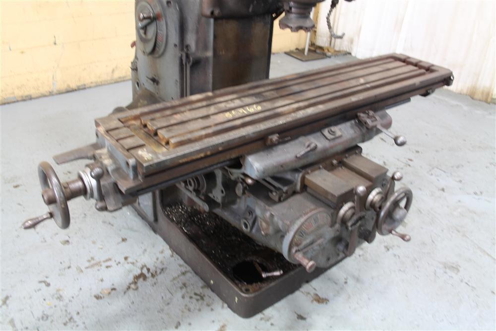 SERIAL ............................... 4-5559 MODEL ................................ H SIZE ................................. #3 UNIVERSAL / SWIVEL TABLE ............. YES VERTICAL HEAD ........................ YES TABLE SIZE ........................... 14" X 64" SPINDLE SPEEDS ....................... (16) 20 TO 1000 RPM LONGITUDINAL TABLE TRAVEL ............ 34" CROSS TABLE TRAVEL ................... 12" VERTICAL TABLE TRAVEL ................ 17" SPINDLE TAPER ........................ #50 NS LONGITUDINAL & CROSS TABLE FEEDS ..... (16) 1/2-30 IPM VERTICAL TABLE FEEDS ................. (16) 1/4-15 IPM COOLANT .............................. YES RAPID TRAVERSE ....................... YES MOTOR ................................ 7-1/2 HORSEPOWER |