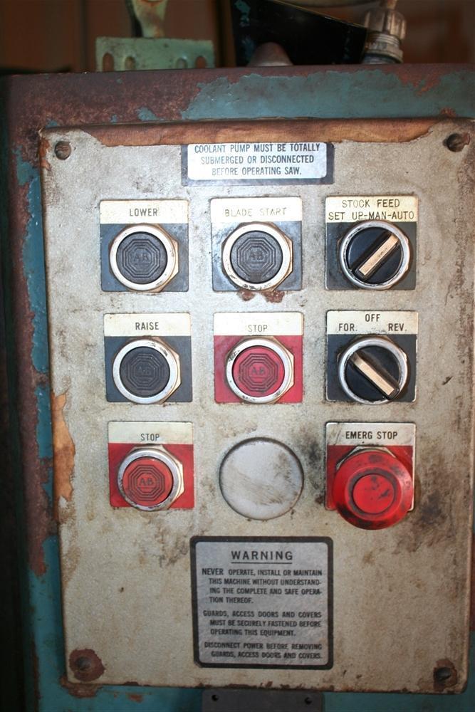 SERIAL ................................ 1934 MODEL ................................. 1270 NEW ................................... 1977 CAPACITY - RECTANGLES ................. 12" X 12" CAPACITY - ROUNDS ..................... 12-3/4" BLADE SPEEDS .......................... (4) 60/115/200/300 FPM BLADE SIZE ............................ 1"W X 13'6"L X .035"THK STOCK STOP LENGTH ..................... 20" 10' POWER ROLLER FEED CONVEYOR ........ YES ADJUSTABLE ROLLER BLADE GUIDES ........ YES HYDRAULIC VISE ........................ YES HYDRAULIC RISE AND FALL ............... YES COOLANT ............................... YES MOTOR ................................. 1-1/2 HORSEPOWER HYDRAULIC MOTOR ....................... 1/2 HORSEPOWER BLADE MOTOR |