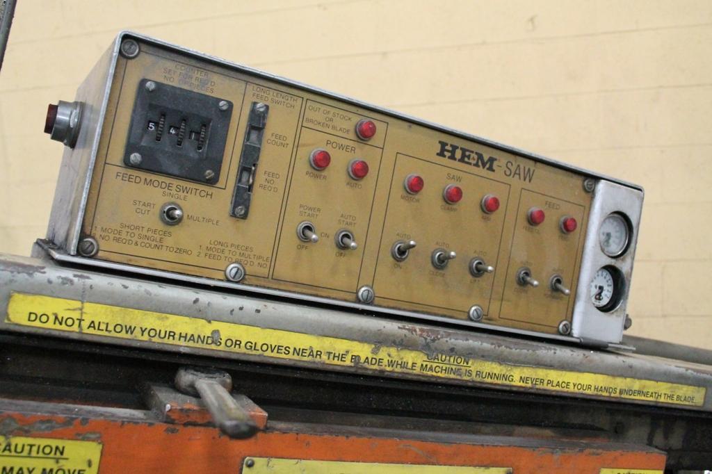 SERIAL .................... 292789 MODEL ..................... 100A CAPACITY RECTANGLES ....... 12-3/4" X 12-3/4" CAPACITY ROUNDS ........... 12-3/4" BLADE SPEED VARIABLE ...... 60 TO 360 FPM BLADE WIDTH ............... 1" BLADE LENGTH .............. 12'10" BAR FEED STOKE ............ 0 TO 24" MAXIMUM BAR FEED INDEXES .......... 1 TO 9 TIMES FEED PRESSURE ............. VARIABLE COOLANT ................... YES DRIVE MOTOR ............... 5 HORSEPOWER |