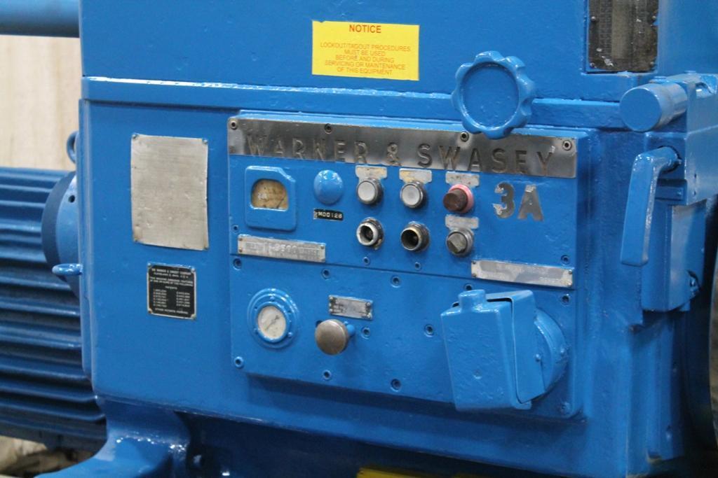 SERIAL ................................. 1645754 MODEL .................................. 3A (M-3500) SQUARE HEAD SWING OVER BED (MAX.) .................. 24-1/2" SWING OVER CARRIAGE HORN ............... 18" SPINDLE NOSE TO TURRET (MAX.) .......... 58-3/4" SPINDLE HOLE ........................... 6-1/4" SPINDLE SPEEDS ......................... (32) 12 TO 851 RPM CHUCK .................................. 21" 3 JAW POWER CHUCK WRENCH ..................... YES CARRIAGE LONGITUDINAL FEEDS ............ (16) .005 TO .167 IPR CARRIAGE CROSS FEEDS ................... (16) .002 TO .082 IPR TURRET LONGITUDINAL FEEDS .............. (16) .005 TO .167 IPR TURRET CROSS FEEDS ..................... (16) .003 TO .096 IPR MAXIMUM LENGTH TURNED .................. 44-1/4" ADJUSTABLE TOOL HOLDERS ................ 2 FLANGE TOOL HOLDERS .................... 4 COOLANT WITH CHIP PANS ................. YES MOTOR .................................. 60 HORSEPOWER |