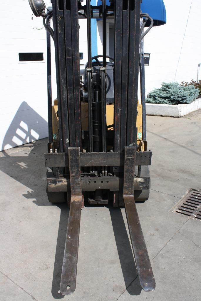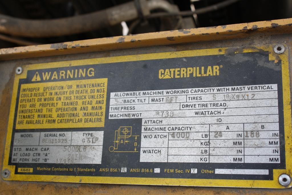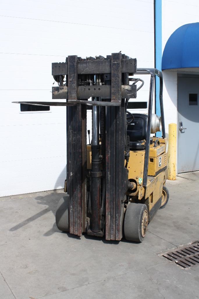 SERIAL ................. 8EB11325 MODEL .................. T50D CAPACITY ............... 5,000 LBS @ 24" FUEL TYPE .............. G & LP HOURS .................. 4175 HRS LIFT HEIGHT ............ 173" COLLAPSED HEIGHT ....... 83" FREE FLOAT ............. 63" FORKS .................. 42" X 4" X 1-1/2" FRONT TIRES ............ 18" X 8" X 12-1/8" REAR TIRES ............. 16" X 5" X 10-1/2" HORN ................... YES ROLL CAGE .............. YES 3-STAGE MAST ........... YES HARD TIRE .............. YES |