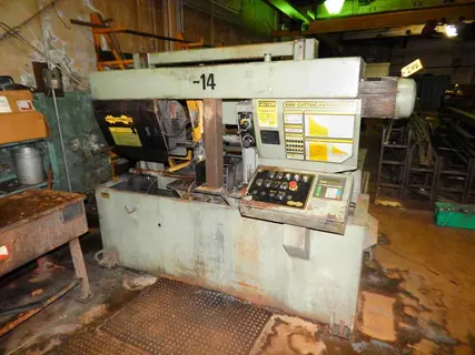 SERIAL ....................... 499.058 MODEL ........................ H-14 YEAR ......................... 1999 CAPACITY ..................... 14" X 14" BLADE SIZE ................... 15'4" X 1-1/4" BLADE SPEEDS ................. 50 TO 350 SFM BUNDLING ATTACHMENT .......... YES POWER DOWN FEED .............. YES POWER CLAMPING ............... HYDRAULIC BLADE TENSION ................ HYDRAULIC CONTROL ...................... CNC LENGTH & CUT QUANTITY SHUTTLE STROKE ............... 34" TABLE HEIGHT ................. 31" COOLANT ...................... YES CHIP AUGER ................... YES BLADE BRUSH .................. YES HYDRAULIC MOTOR .............. 2 HP DRIVE MOTOR .................. 10 HP |