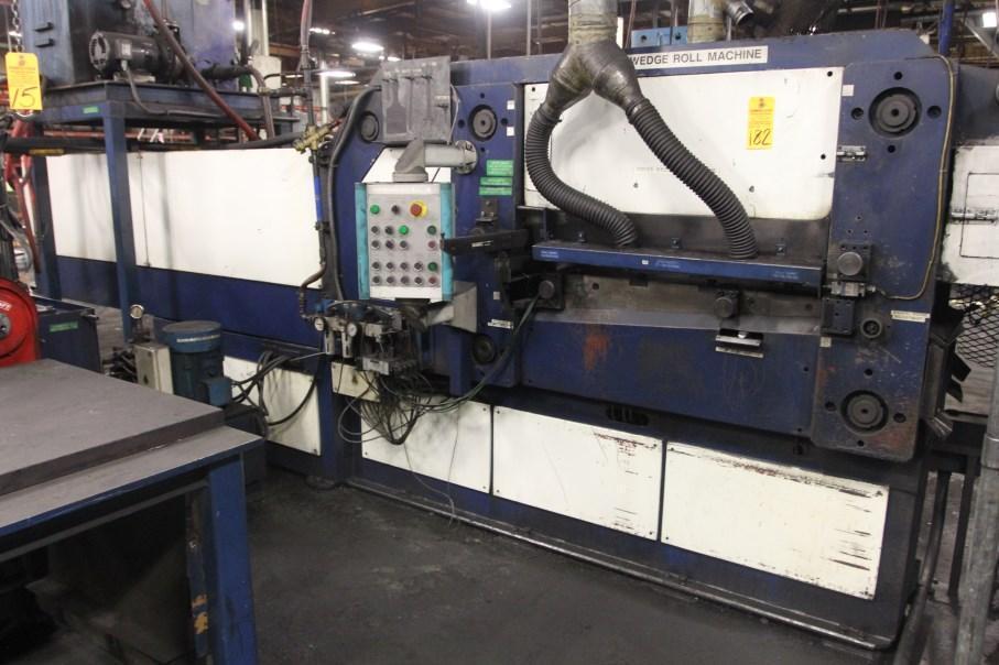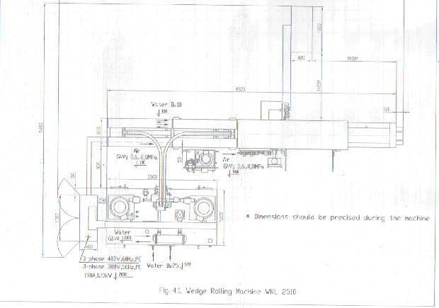 SERIAL ................................ 001 MODEL ................................. WRL2510 YEAR .................................. 2003 MAX LENGTH ............................ 350MM SINGLE PIECE ROLLING OUTPUT ........... 500-750 MAX NUMBER DOUBLE STROKES PER MIN ..... 14 MAX PRODUCTION RATE ................... 800 PCS/HR INITIAL BILLET DIAMETER ............... 20-23MM INITIAL BILLET LENGTH ................. 80-120MM MAX LENGTH ROLL FORGING DIAMETER ...... 20-23MM MAX LENGTH ROLL FORGING LENGTH ........ 240MM TOOL LENGTH ........................... 1000MM MIN AUTOMATIC CYCLE TIME .............. 4.5 INSTALLED ELECTRIC POWER .............. 116KW OPERATION MODE ........................ 2-SHIFT DUAL MOTOR HY UNIT .................... 50HP POWER SUPPLY .......................... 3PH,AC/380/480V/50/60HZ COMPRESSED AIR LINE CHARACTERISTICS: PRESSURE .............................. 0,6-0,8 MPA MAX RATED NORMAL AIR FLOW RATE 1/MIN .. 1000 |