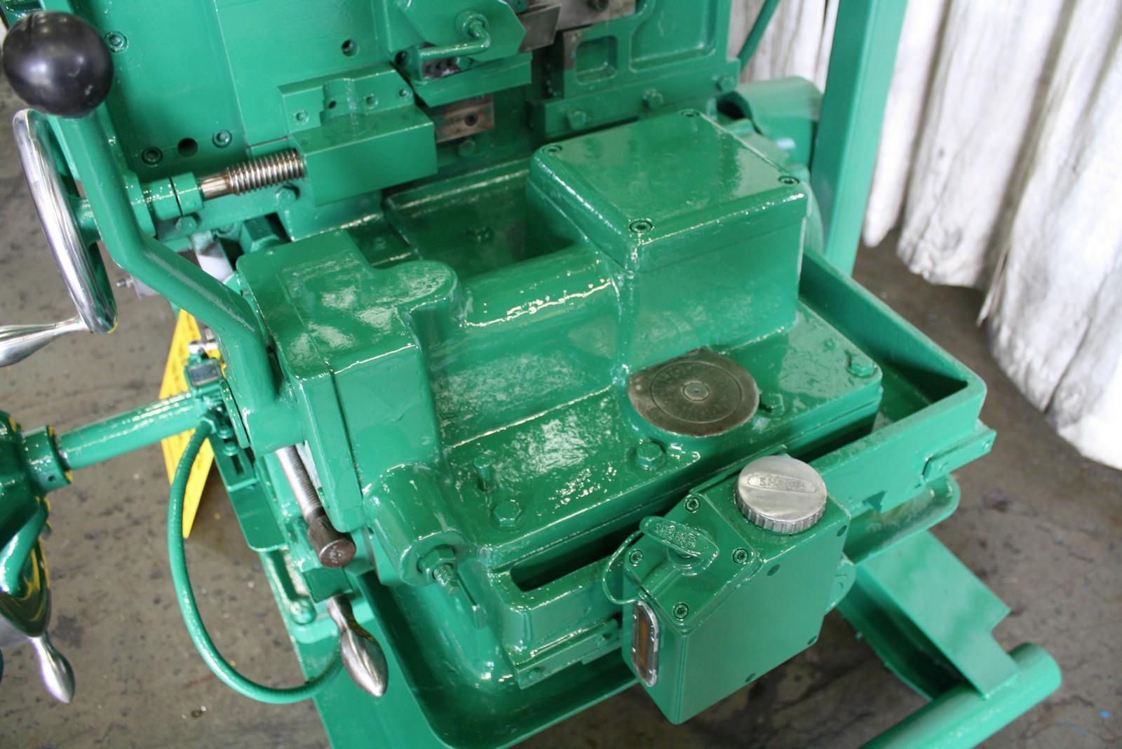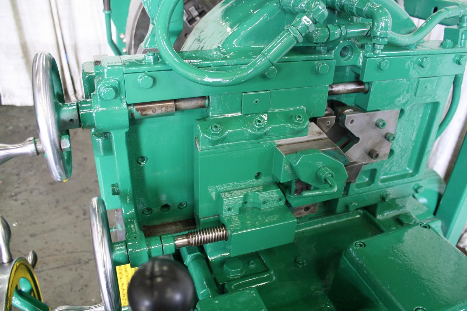 SERIAL ............................ 112 MODEL ............................. HP751 YEAR NEW .......................... 1978 CAPACITY .......................... 2-19/32" TO 4-3/4" CAPACITY WITH AUXILLARY HOLDERS ... 1-21/32" TO 2-17/32" MAXIMUM TAPERED THREAD LENGTH ..... 5" CARRIAGE TRAVEL ................... 19" SPINDLE SPEEDS .................... (8) 18.8 TO 73.3 RPM TAPER/RECEDING DIE HEAD ........... YES LEADSCREW ......................... YES CHUCKS FRONT & REAR ............... 3 JAW CUTOFF SLIDE ...................... YES BEVELING SLIDE .................... YES HARD BED WAYS ..................... YES POWER RAPID TRAVERSE TO CARRIAGE .. YES COOLANT ........................... YES MAIN DRIVE MOTOR .................. 5 HORSEPOWER |