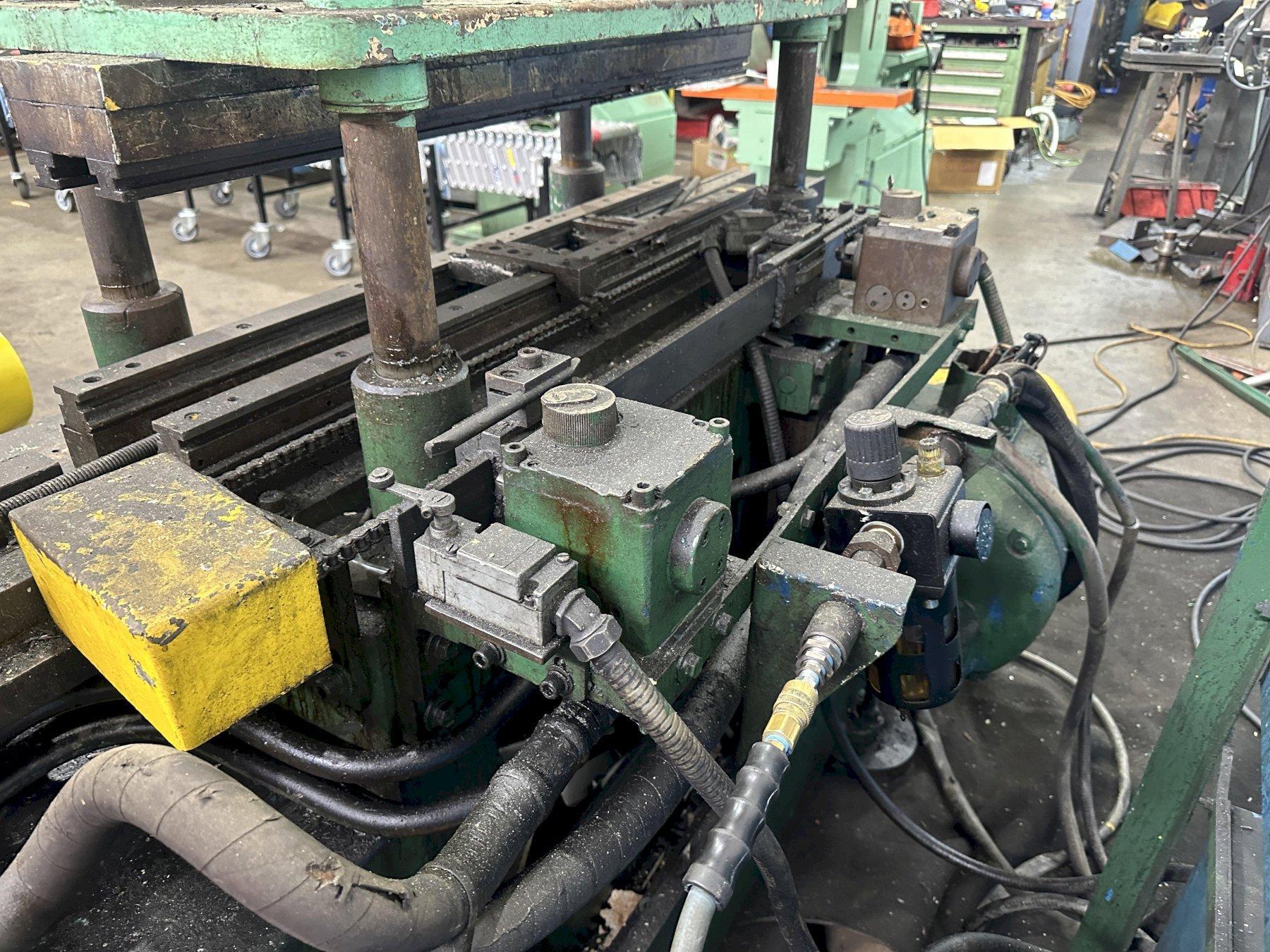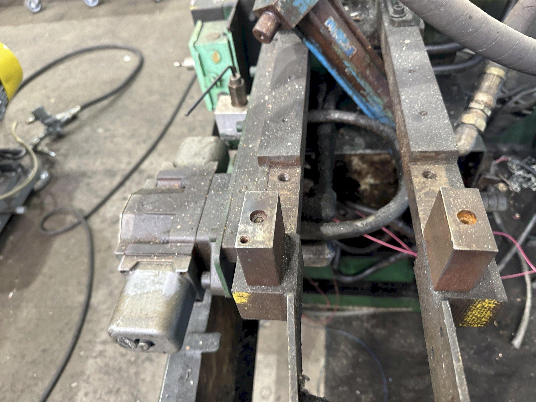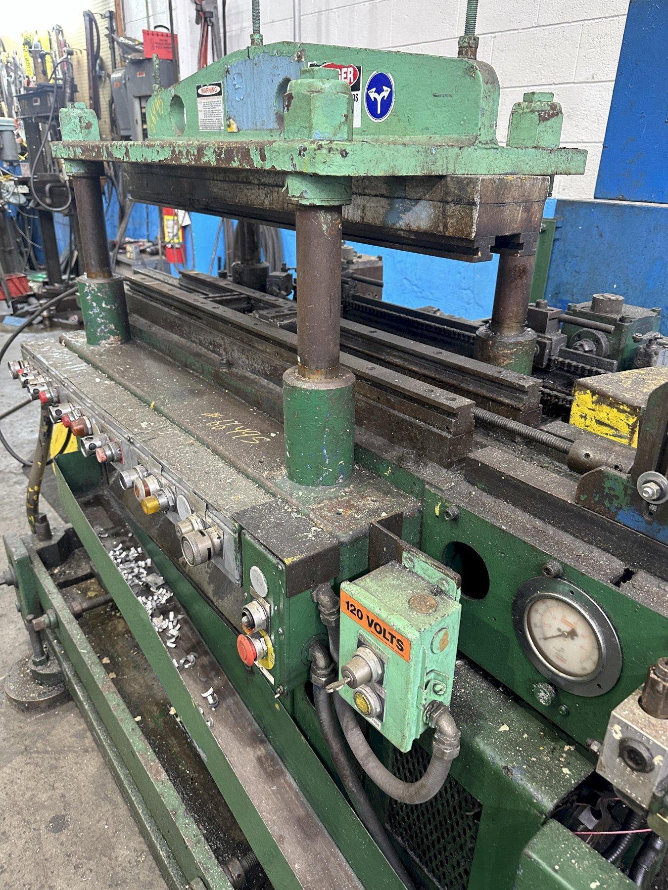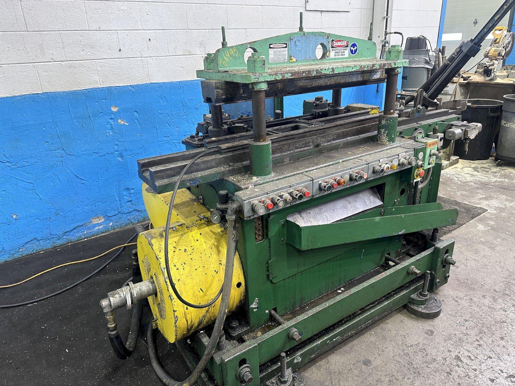 SERIAL ............................ 18154 CAPACITY .......................... 30 TON STROKE OF RAM ..................... 3" OPEN HEIGHT ....................... 14" DISTANCE BETWEEN POST GUIDES ...... 28-1/4" L/R DISTANCE BETWEEN POST GUIDES ...... 11-1/4" F/B UPPER AND LOWER DIE RAILS ......... YES DIE ACCELERATOR ................... YES AIR CLUTCH ........................ YES AIR BRAKE ......................... YES MOTOR, HORSEPOWER ................. 3 |