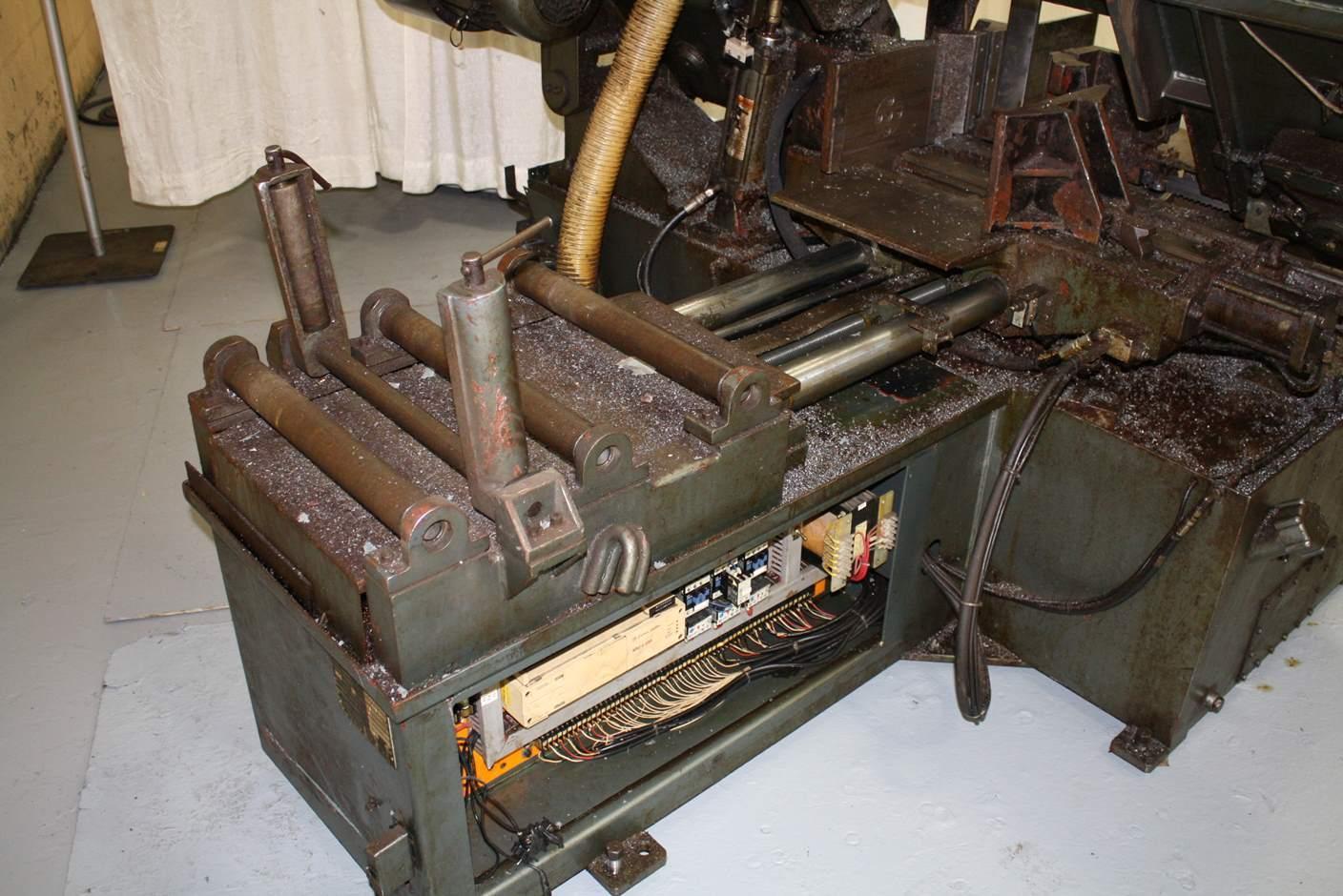 SERIAL ....................... EPA130535 MODEL ........................ PA13/2 YEAR NEW ..................... 1999 CAPACITY RECTANGLES .......... 13" X 14" CAPACITY (ROUND) ............. 13" BLADE DIMENSION .............. 13'6" X 1-1/4" X .042" BLADE SPEED (VARIABLE) ....... 80 TO 400 SFPM FEED FORCE (VARIABLE) ........ 0 TO 300 LBS AUTOMATIC BAR FEED ........... 20" MAXIMUM INDEXING CYCLES .............. 9 BUNDLE CUTTING (NESTING) ..... YES HYDRAULIC BLADE TENSION ...... YES LOAD CAPACITY ................ 6,250 LBS. FLOOR TO TOP OF TABLE ........ 27-1/2" PIECE COUNTER ................ YES HYDRAULIC DRIVE MOTOR ........ 1 BLADE DRIVE MOTOR ............ 5 HORSEPOWER COOLANT PUMP ................. 1/8 HORSEPOWER |