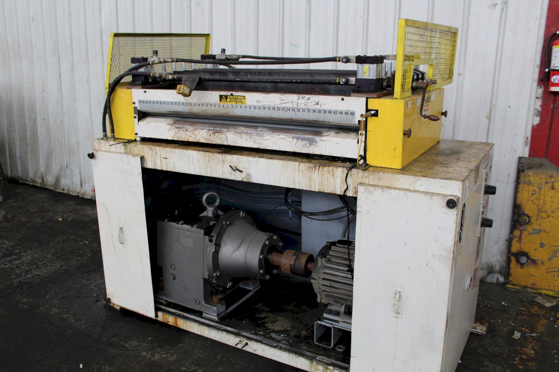 SERIAL ................. 5324 MODEL .................. PS 3X9 NUMBER OF WORK ROLLS ... 9 WIDTH .................. 48" THICKNESS CAPACITY ..... .030" @ 48" WIDE .050" @ 36" WIDE .060" @ 24" WIDE VFD AUTO LUBE SYSTEM MANUAL ROLL ADJUST WITH ELECTRONIC INDICATION |