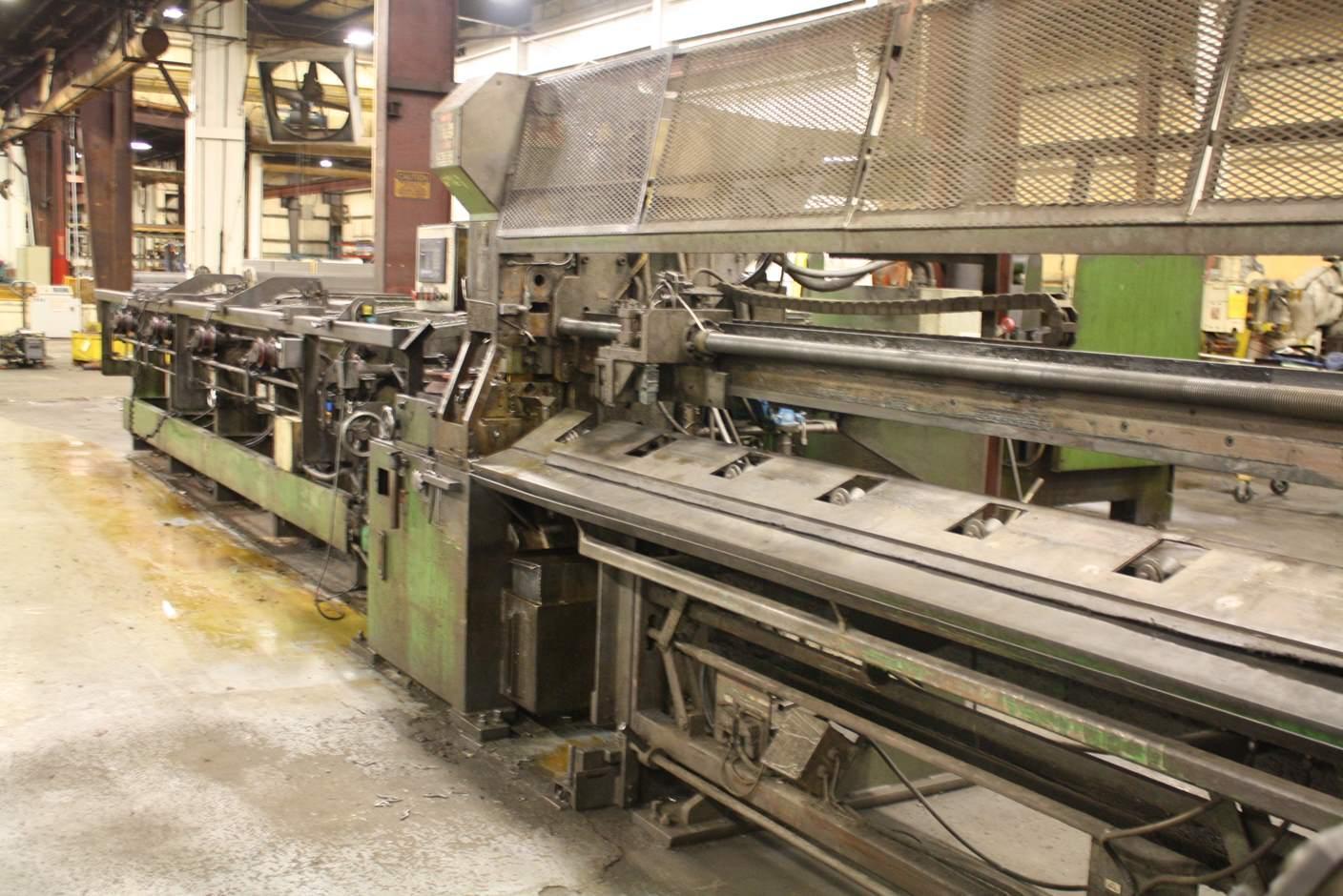 SERIAL .................................. 5300 MODEL ................................... 873 YEAR .................................... 2000 CAPACITY ................................ 3" x .125 DUAL BLADE SHEAR CUTTING ................ YES MAX CUTTING CAPACITY .................... 3" MIN CUTTING CAPACITY .................... 1/2" SCREW FEED & CUTOFF LENGTH BY PROGRAMMABLE SERVO FEED WITH: TARGET STOP FROM ........................ 2"-120" HYDRAULIC OPERATED CUT OFF PUMP MOTOR ... 40HP EQUIPPED WITH: BUNDLE UNSCRAMBLING & PREFEED FOR TUBING |