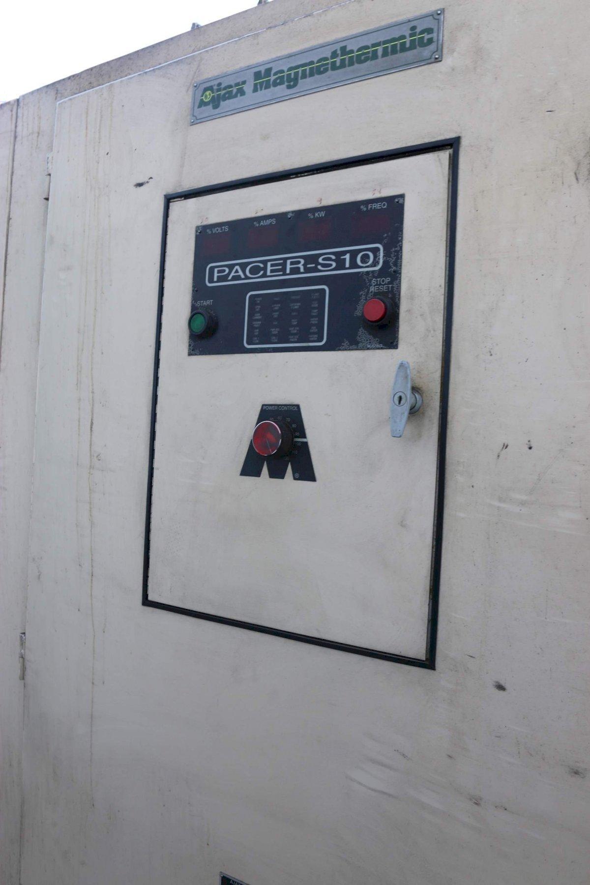 SERIAL ...................... H-2L640-E MODEL ....................... SCANNER A-B YEAR NEW .................... 8/1998 PREVIOUS USE ................ 1.375" DIA X 14"L ELECTRICAL .................. 480/3/60 CONSISTS OF: 150 KW 10KHZ PACER S10 NON INTEGRAL POWER SUPPLY DUAL OUTPUT HEAT STATION TWIN TOWER SINGLE SPINDLE 24" MD SCANNER SIDEMOUNT QUENCH SYSTEM WITH SEPARATOR/BAG FILTER MAGNESCAN II CONTROLS SIDE MOUNT WATER SYSTEM COMMON BASE AND INTERCONNECTIONS BUS EXTENSIONS QUICK DISCONNECTS LOT OF SOFTWARE |